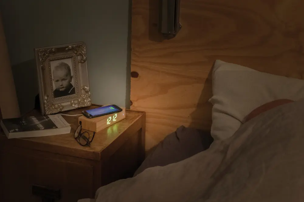 Réveil en bambou avec chargeur sans fil 5W