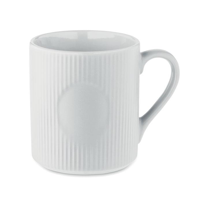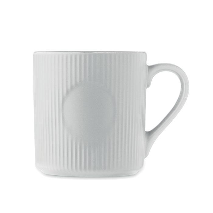 Découvrez la tasse céramique striée 340 ml RIBMUG, un mug promotionnel nervuré au design élégant et moderne, parfait pour personnaliser avec votre logo.