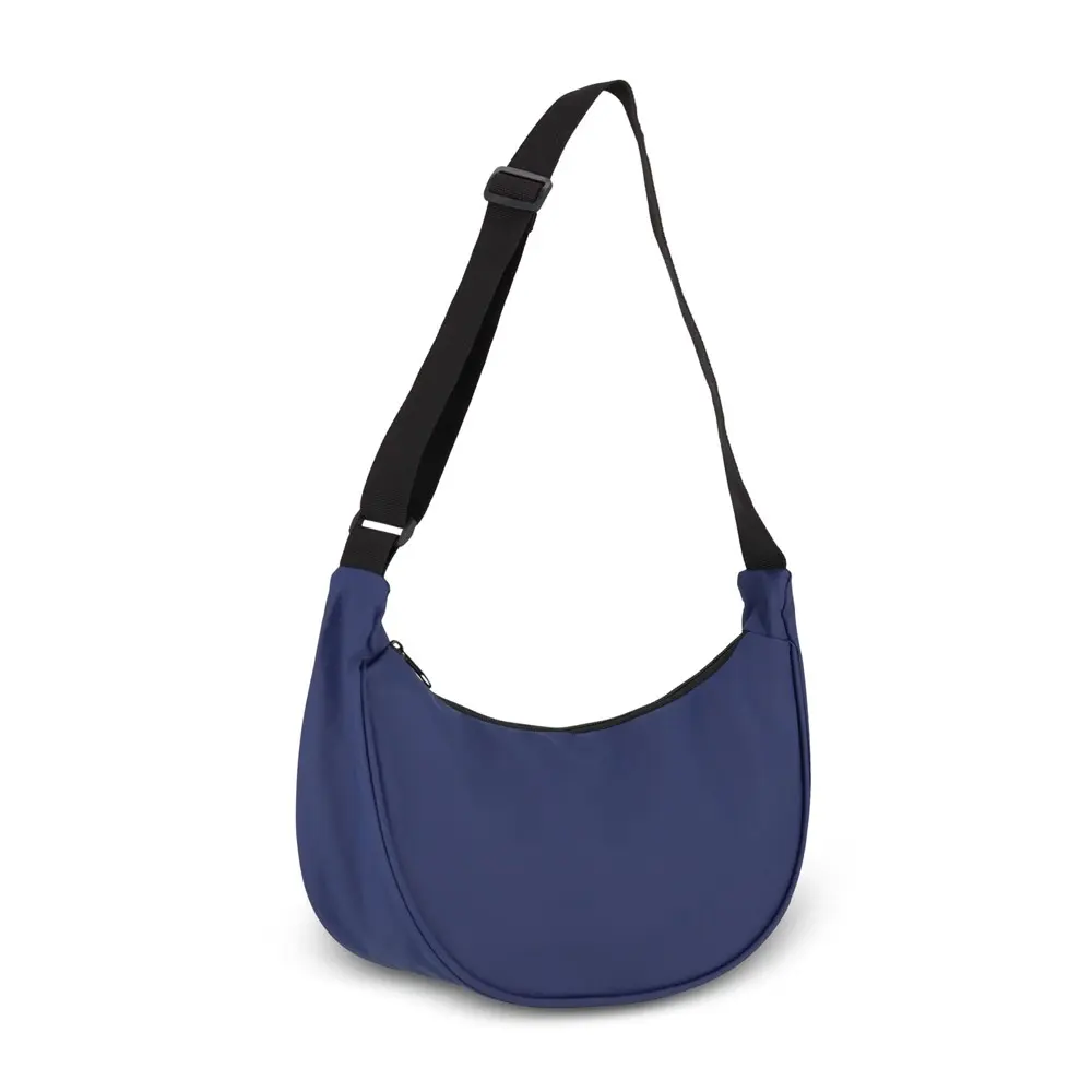 Découvrez ce sac à bandoulière demi-lune, idéal pour vos campagnes marketing et événements d'entreprise. Fabriqué en PET recyclé enduit de PU avec un tissu robuste 600D, il allie durabilité et style contemporain, parfait pour des cadeaux promotionnels personnalisés avec votre logo.