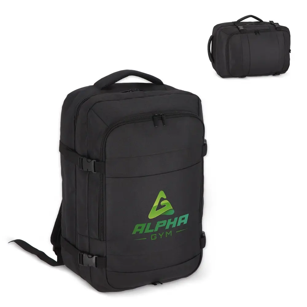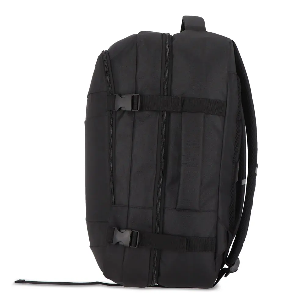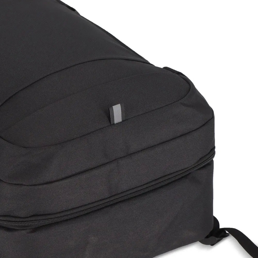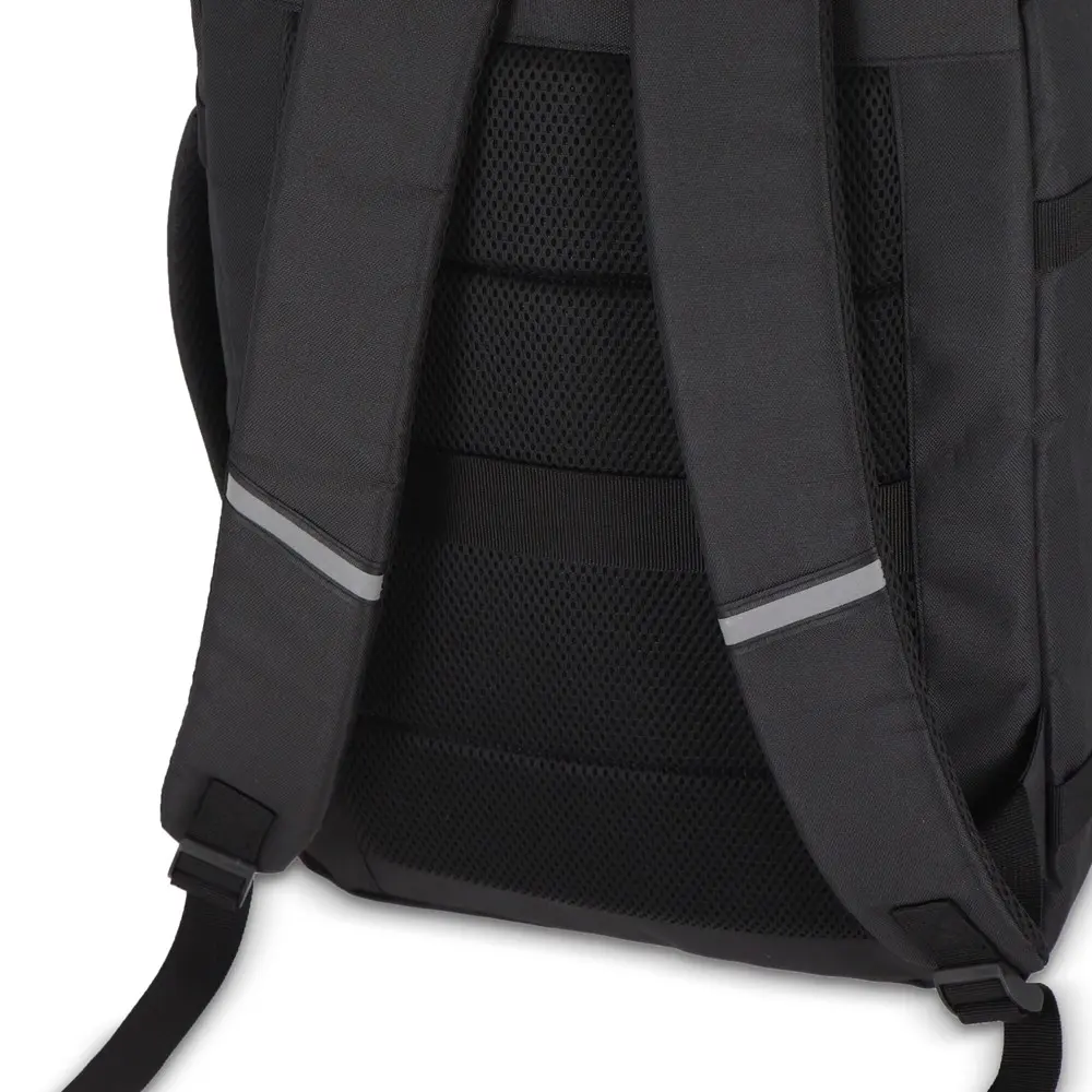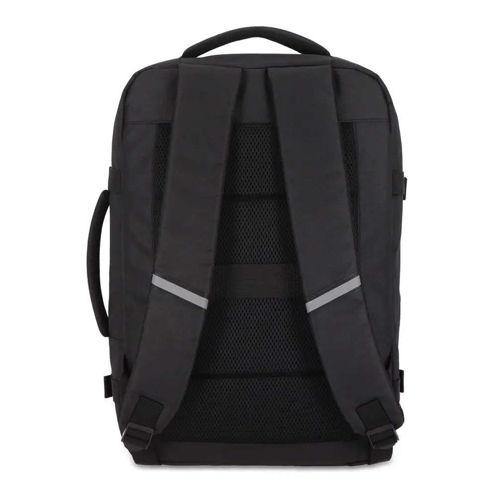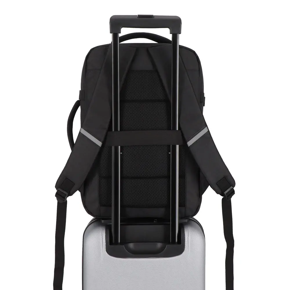 Ce sac à dos a été conçu pour le voyageur moderne. Il s'ouvre à 180 degrés, avec une poche cachée pour les vêtements d'un côté et un compartiment rembourré pour l'ordinateur portable de l'autre. La poche frontale spacieuse permet d'accéder facilement aux accessoires et aux éléments essentiels. Pour plus de confort, le sac est équipé de poignées rembourrées, de bretelles réglables et d'un panneau arrière rembourré. En outre, une sangle arrière permet de glisser le sac à dos en toute sécurité sur la poignée d'un trolley pour les longs trajets. Les détails réfléchissants améliorent la visibilité et la sécurité lors des déplacements nocturnes.