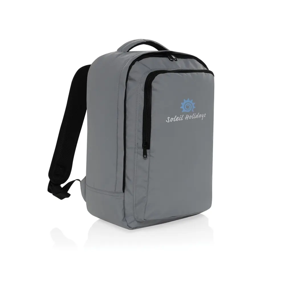 Ce sac à dos compact en rPET est idéal pour les professionnels en déplacement lors d'événements ou de voyages d'affaires. Fabriqué à 100 % en polyester recyclé avec le traceur AWARE™, il offre une option durable pour promouvoir votre marque de manière responsable. Personnalisez-le avec votre logo pour renforcer la visibilité de votre entreprise auprès de vos clients et partenaires.