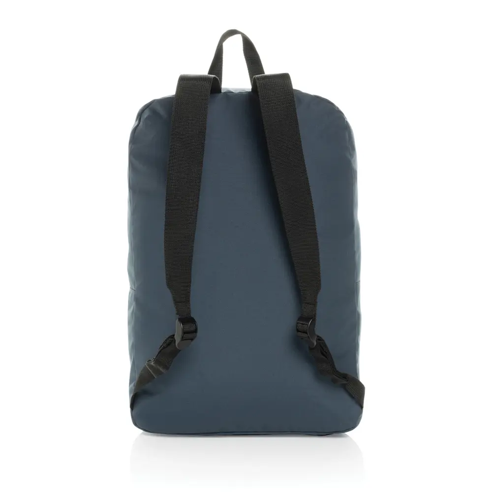 Découvrez le sac à dos classique pliable Dillon, un choix idéal pour vos campagnes promotionnelles et événements d'entreprise. Fabriqué en polyester recyclé 300D (rPET) 100 % durable et léger, il offre une capacité de 15 L avec un compartiment principal spacieux et une poche frontale zippée pour une organisation optimale. Pliant et compact, il se range facilement dans votre sac lors de déplacements imprévus, parfait pour les aventures quotidiennes ou les gifts corporate.