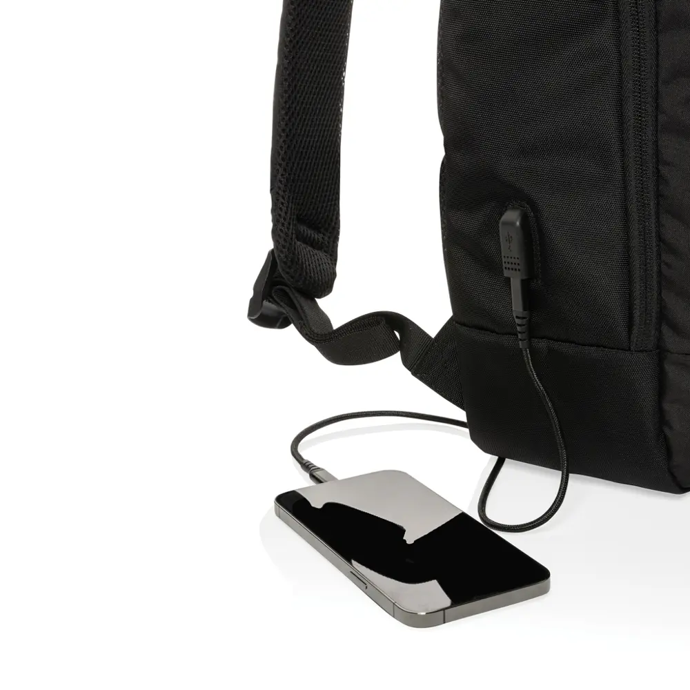 Le port de charge USB-C intégré permet une connexion facile à une batterie de secours, vous permettant de recharger votre téléphone ou tablette en déplacement. Avec une capacité de 18 litres, ce sac à dos s'adapte parfaitement aux besoins quotidiens des marketing professionals et event organizers, facilitant les trajets lors d'événements ou de rendez-vous d'affaires.