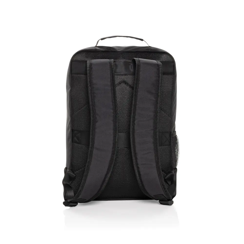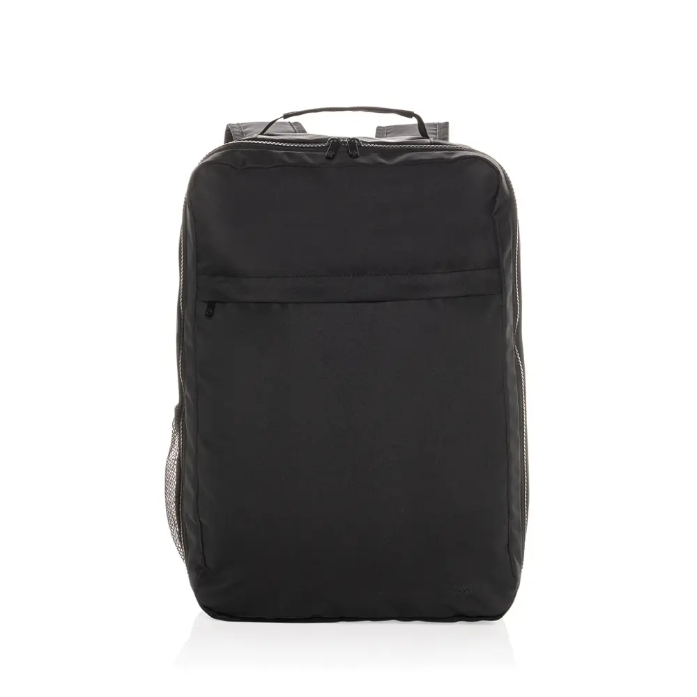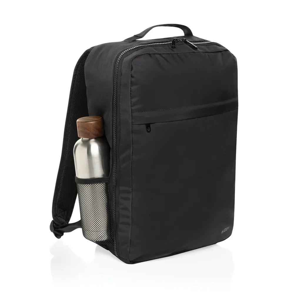 Profitez d'un rangement supplémentaire grâce à la poche frontale zippée et à la poche latérale pour bouteille. Une sangle de bagage à l'arrière facilite le transport avec une valise, tandis qu'une poignée en sangle sur le dessus permet un port à la main rapide. Avec une capacité de 17 litres, il s'adapte parfaitement à vos essentiels professionnels sans alourdir votre charge.