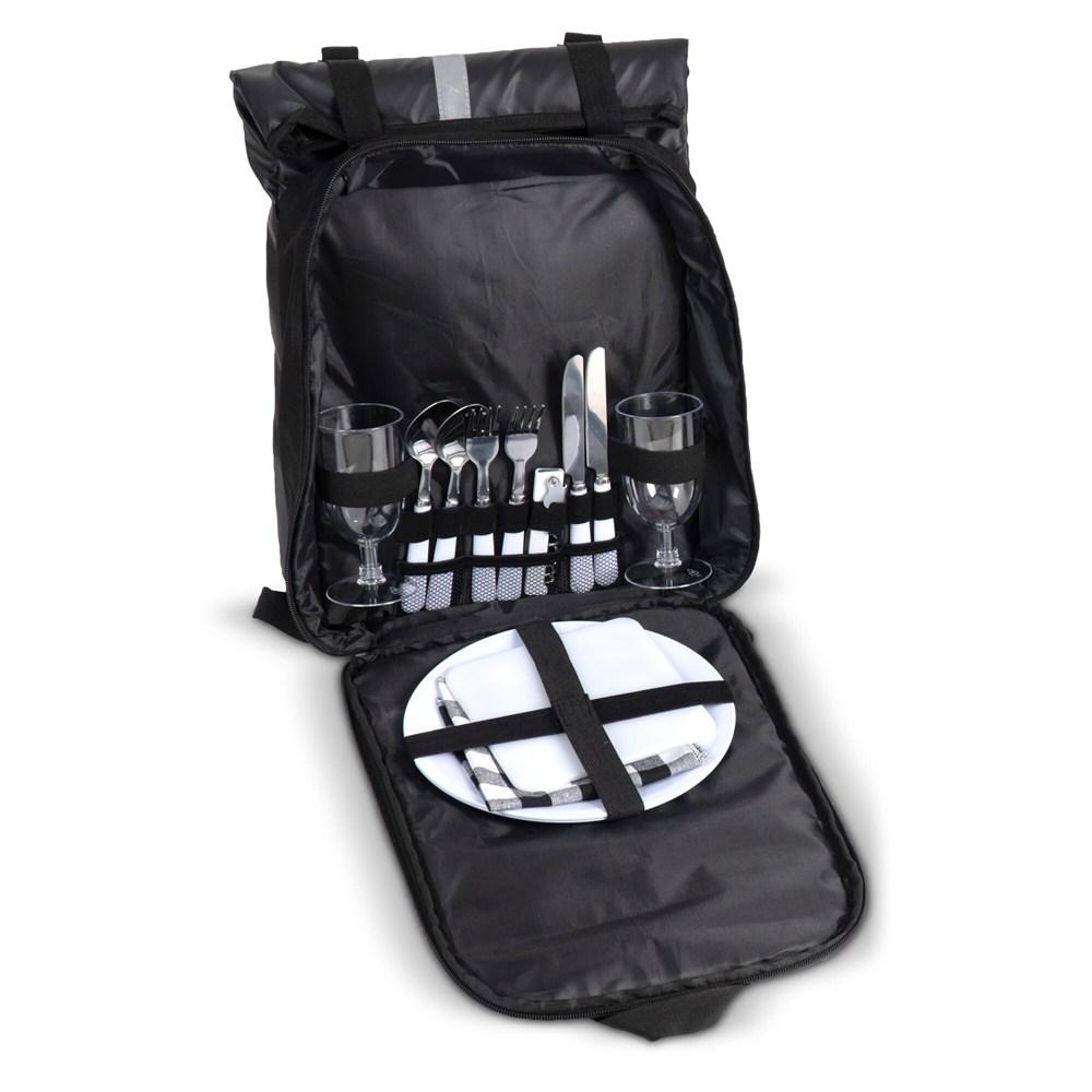 Découvrez ce sac à dos pique-nique complet et pratique, parfait pour les événements d'entreprise et les actions promotionnelles. Équipé d'un vaste ensemble de couverts, assiettes, serviettes de table, tire-bouchon et planche à découper, il offre tout le nécessaire pour un pique-nique réussi à deux.