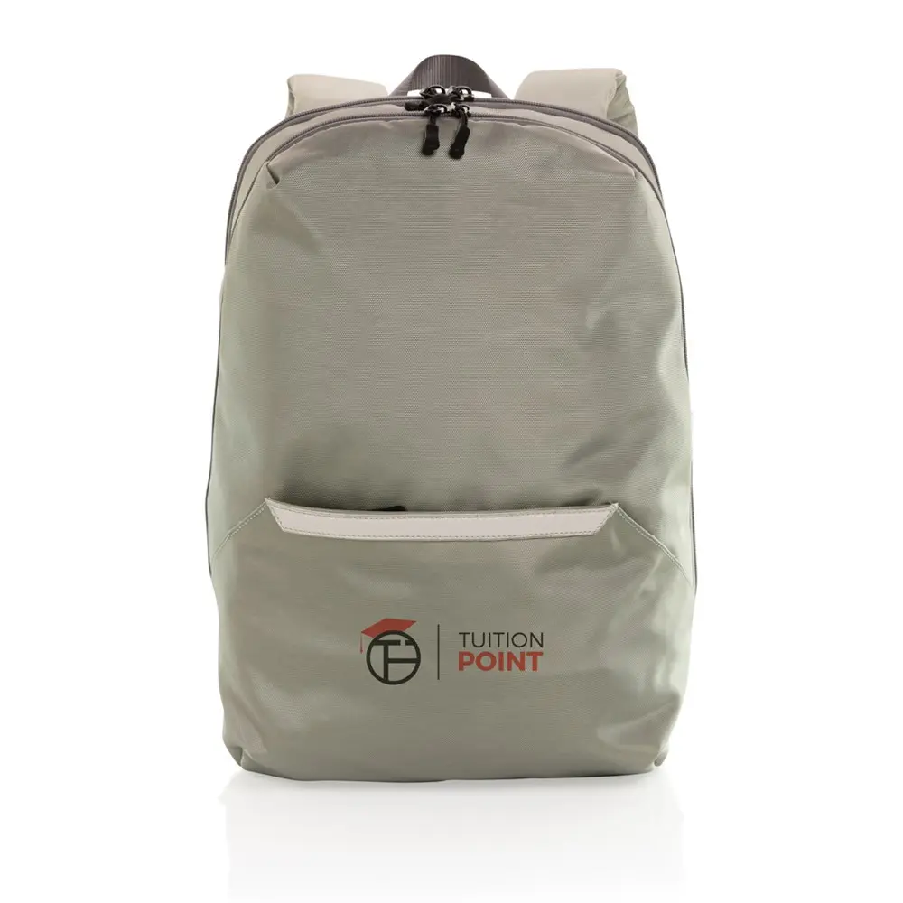 Découvrez ce sac à dos moderne, idéal pour les événements d'entreprise et les campagnes marketing. Conçu pour transporter un ordinateur portable de 15,6 pouces en toute sécurité, il offre un compartiment dédié et une poche frontale zippée pour un accès rapide à vos essentiels. Fabriqué en polyester recyclé (rPET) pour l'extérieur et la doublure, il intègre le traceur AWARE™ qui garantit l'authenticité des matériaux recyclés. Chaque exemplaire réutilise l'équivalent de 32,7 bouteilles PET de 0,5 L, contribuant ainsi à une réduction significative des déchets plastiques.