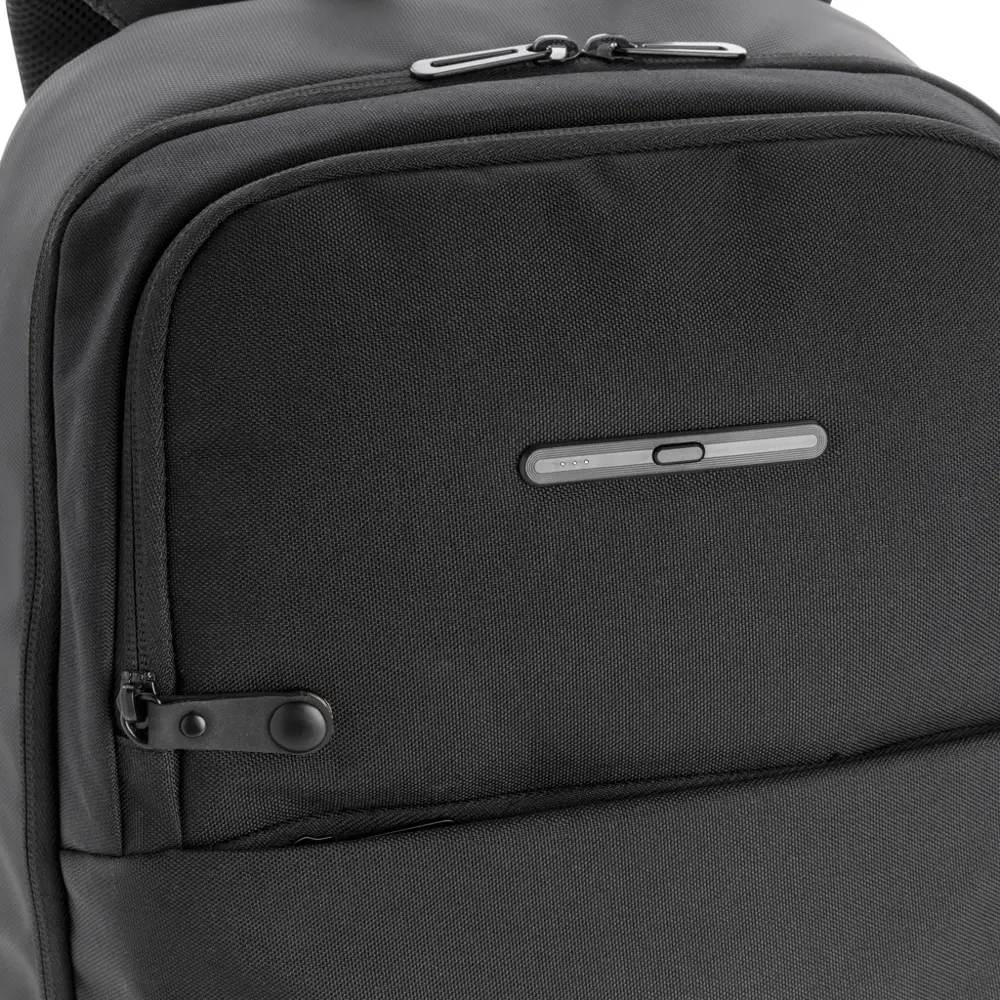Ce sac à dos intègre une poche frontale de stérilisation UV-C qui élimine jusqu'à 99,9 % des bactéries sur vos clés, téléphone ou autres objets en seulement trois minutes. Les trois lampes LED UV-C, non toxiques et sans mercure, s'éteignent automatiquement à l'ouverture pour une sécurité maximale. Parfait pour distribuer des cadeaux d'entreprise sécurisés, il renforce l'image de marque responsable de votre organisation en protégeant la santé de vos clients lors d'événements ou de campagnes publicitaires.