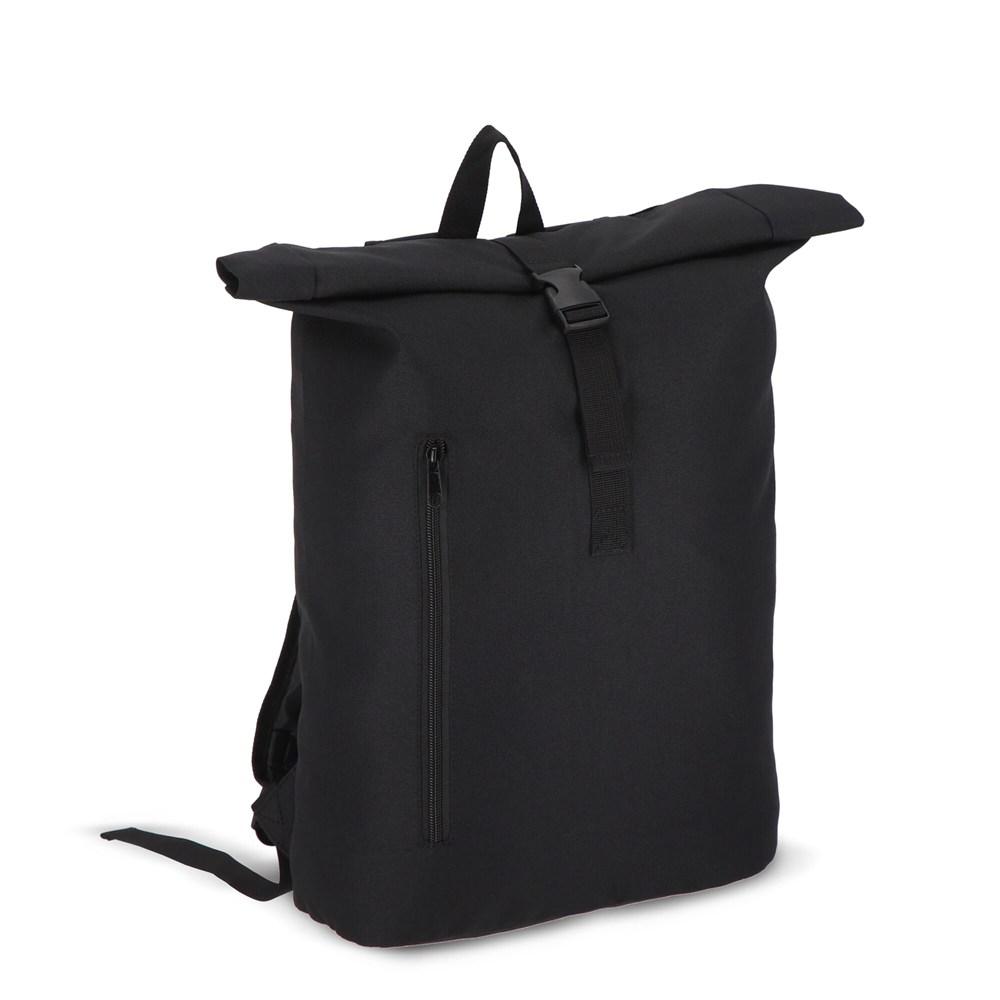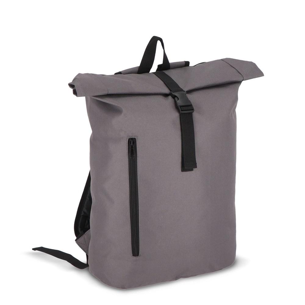 Ce sac à dos roll-top de 20 litres en PET recyclé allie style tendance et durabilité, parfait pour vos campagnes marketing et événements. Son design pratique avec bretelles réglables et rembourrées assure un confort optimal pour un usage quotidien, tandis que la poignée supérieure et la poche frontale zippée facilitent l'accès aux essentiels.