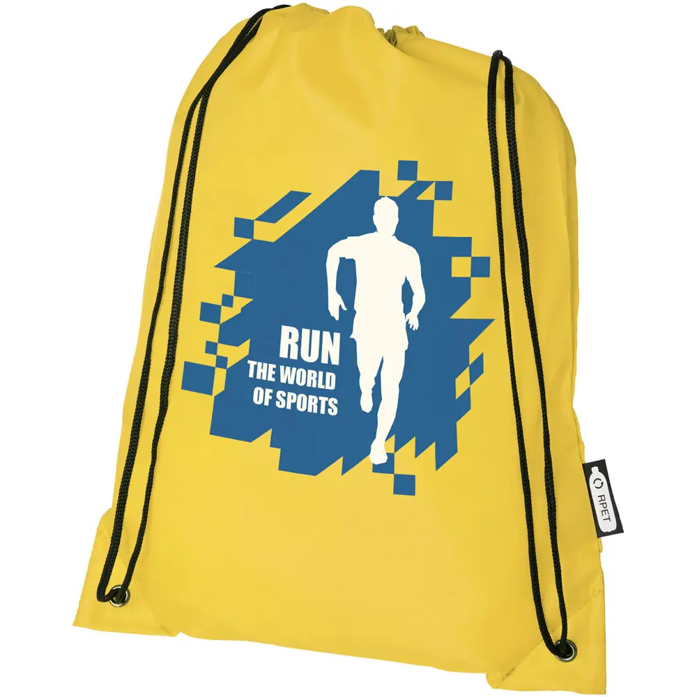 Découvrez le sac Oriole avec cordon de serrage 5L, idéal pour vos campagnes marketing et événements d'entreprise. Fabriqué à 100 % à partir de plastique recyclé post-consommation, il intègre l'équivalent de 3,5 bouteilles PET recyclées, contribuant activement à la réduction des déchets plastiques et à une image éco-responsable pour votre marque.