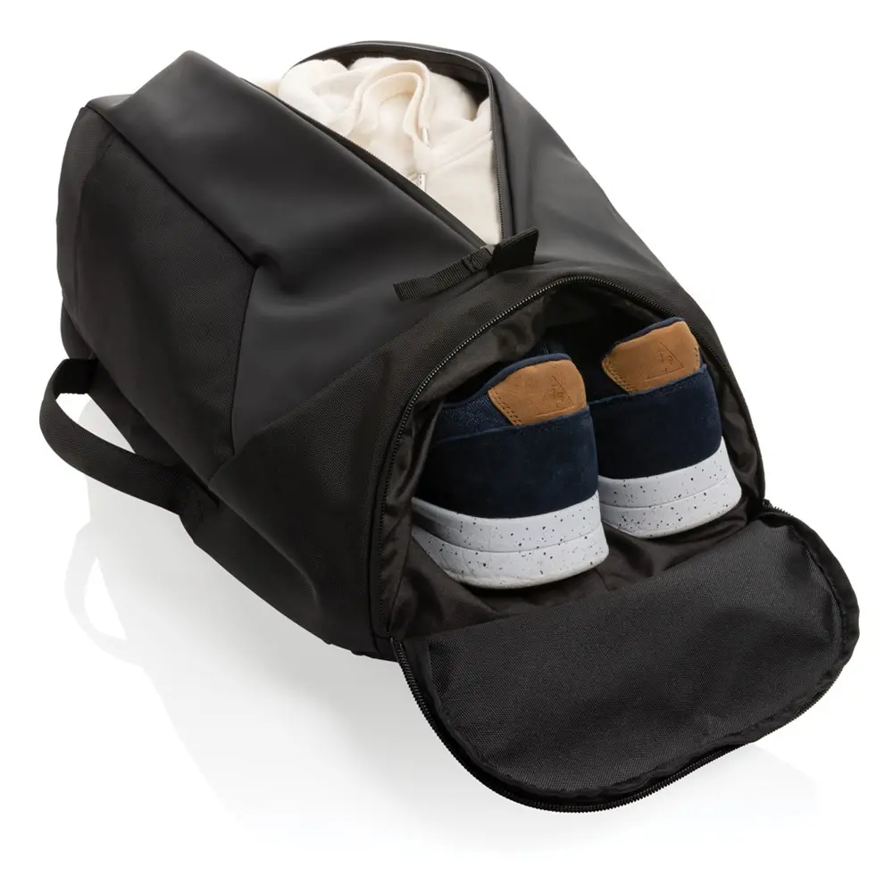 Découvrez le sac à dos hybride Swiss Peak Aware™ , idéal pour alterner entre salle de sport et bureau. Conçu avec des compartiments dédiés aux affaires de gym et une organisation optimisée pour vos outils professionnels, il inclut un espace sécurisé pour ordinateur portable jusqu'à 15,6 pouces. Parfait pour les professionnels du marketing et organisateurs d'événements, ce modèle polyvalent renforce l'image de marque de votre entreprise lors de distributions promotionnelles.