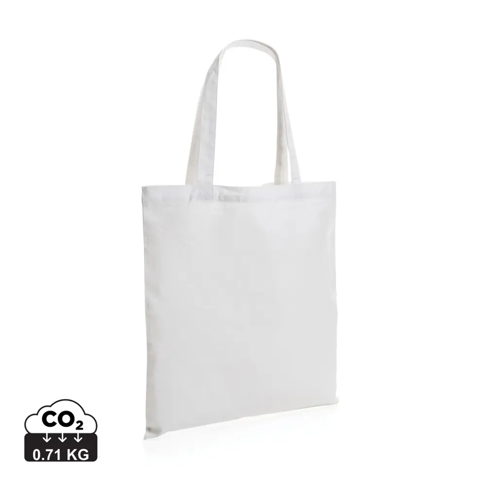 Racontez une histoire authentique de durabilité avec ce tote bag en coton recyclé de 145 g/m², idéal pour vos campagnes marketing et événements d'entreprise. Doté de la technologie AWARE™, il garantit l'utilisation de 70 % de coton recyclé et 30 % de rPET, avec une traçabilité vérifiable pour chaque envoi. Choisissez ce sac pour promouvoir votre marque de manière éco-responsable : il permet d'économiser 465 litres d'eau par unité, basé sur des données fiables de Textile Exchange.