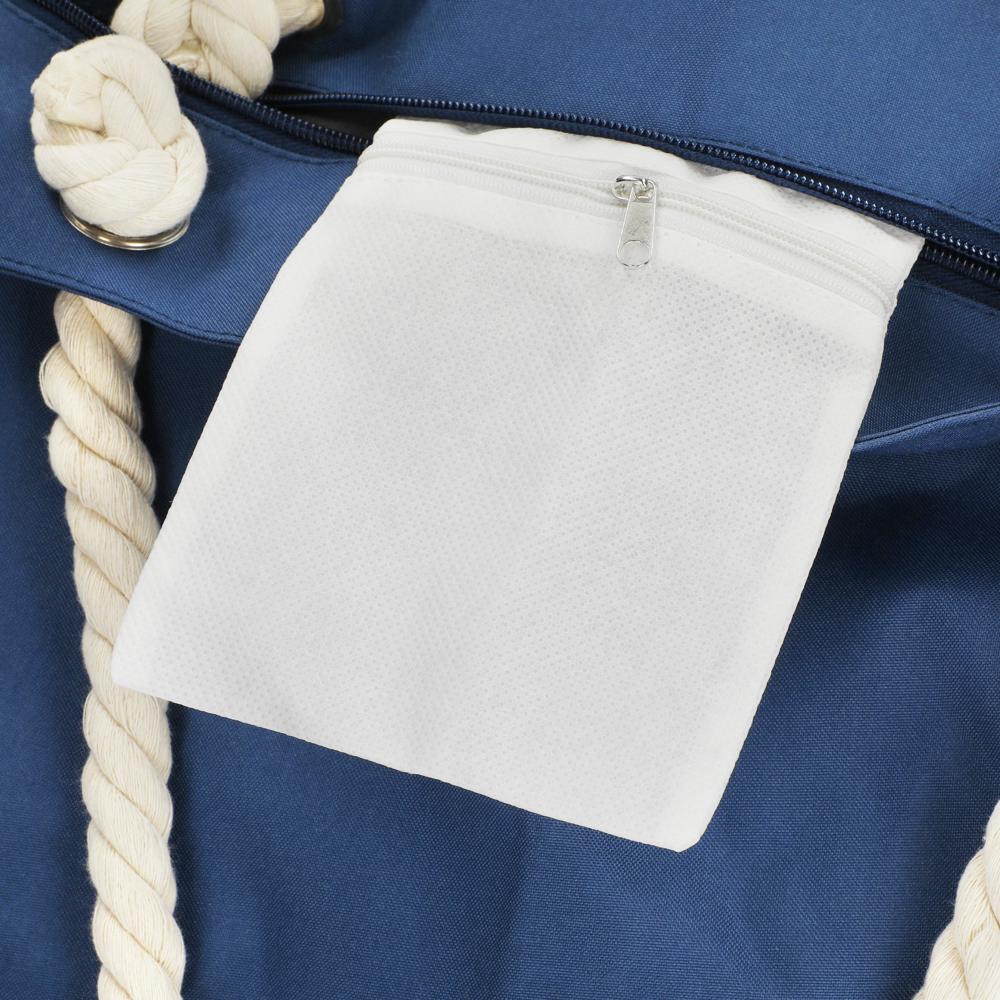Les deux anses en cordelière de coton épaisse (diamètre 15 cm) renforcées par des œillets métalliques assurent un confort optimal et une durabilité accrue, même chargé à bloc. La fermeture éclair avec tirette sécurise le contenu, tandis qu'un petit sac en non-tissé cousu est inclus pour organiser vos essentiels.