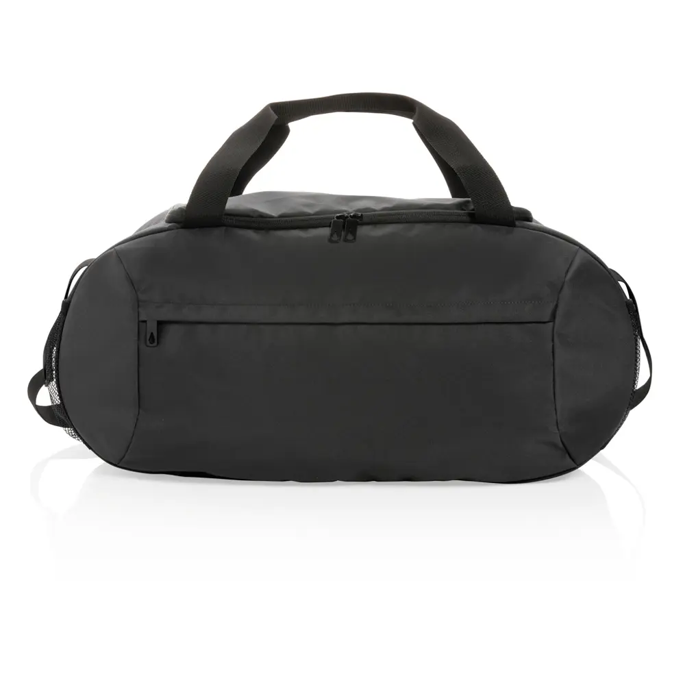 Découvrez notre sac de sport moderne en rPET Impact AWARE™, fabriqué à 100 % à partir de polyester recyclé. Son design épuré et contemporain intègre une poche frontale zippée pour un accès rapide et un compartiment principal spacieux de 28 L, idéal pour transporter vos affaires en toute praticité.
