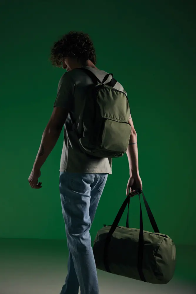 Découvrez le sac de sport pliable Dillon, idéal pour les professionnels du marketing et les organisateurs d'événements cherchant des cadeaux promotionnels durables. Fabriqué en polyester 100 % recyclé (rPET) avec le traceur AWARE™, il offre une capacité généreuse de 40 L tout en étant ultra-léger et compact : il se range facilement dans sa pochette intégrée, parfait pour optimiser l'espace lors de voyages ou d'événements.