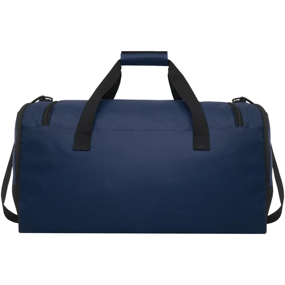 Découvrez notre sac de voyage écologique, idéal pour les professionnels en marketing et les organisateurs d'événements. Fabriqué à 100 % en polyester recyclé post-consommation certifié GRS, ce modèle contribue activement à la réduction des déchets plastiques. Environ 27 bouteilles ont été recyclées pour sa production, alliant praticité et engagement environnemental.