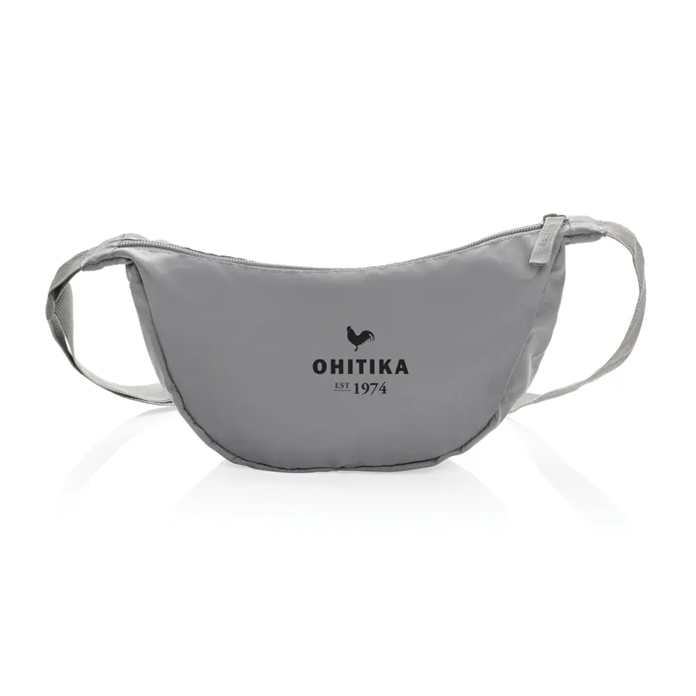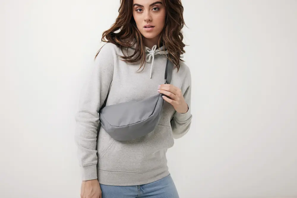 Découvrez le sac banane en bandoulière Crescent, un accessoire unisexe polyvalent en polyester recyclé rPET Aware™. Idéal pour les modes de vie actifs, il s'ajuste parfaitement au corps grâce à sa bandoulière réglable, offrant un confort optimal et un style moderne. Compact avec une capacité de 3 litres, il contient facilement smartphone, portefeuille et essentials quotidiens.