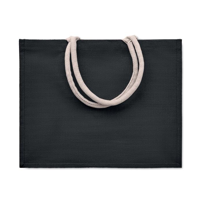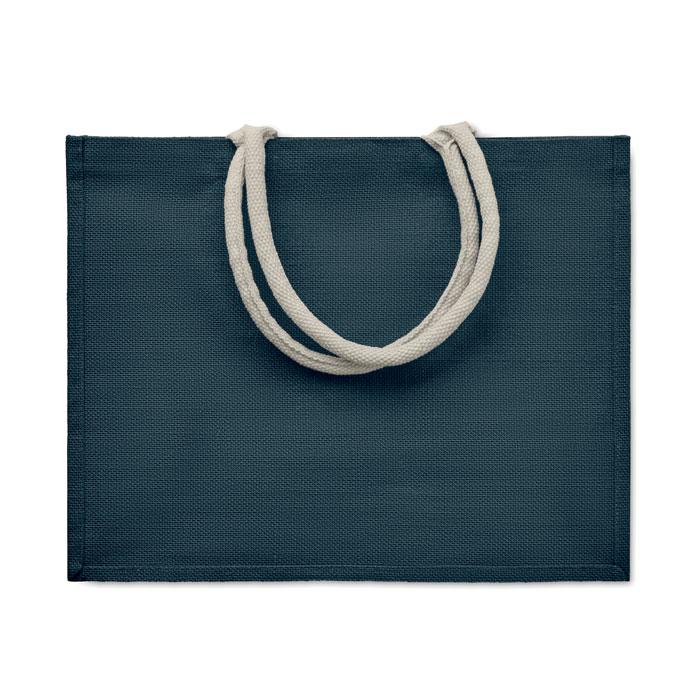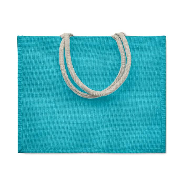 Le Sac en jute Aura avec poignées en coton est l'accessoire promotionnel idéal pour vos événements et campagnes marketing. Fabriqué en toile de jute pelliculée résistante à l'eau, il offre une grande durabilité pour un usage quotidien intensif, tout en étant entièrement écologique et recyclable.