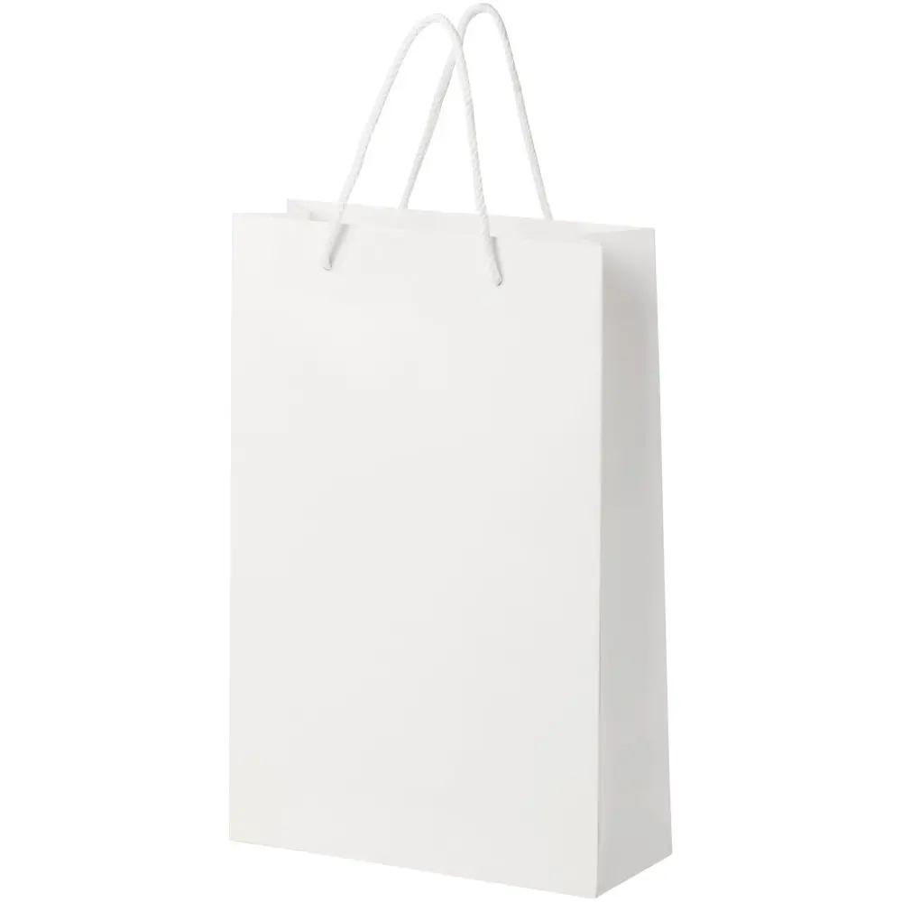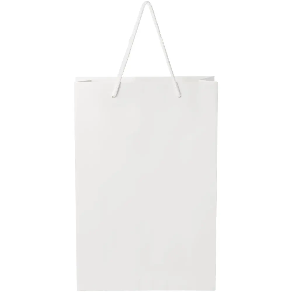 Découvrez ce grand sac en papier intégral, fabriqué artisanalement avec un grammage de 170 g/m² et une finition mate. Ses dimensions de 24 x 9 x 36 cm en font un contenant spacieux, idéal pour transporter des objets lors d'événements ou de distributions promotionnelles. Les poignées torsadées en plastique assurent une prise confortable et résistante.