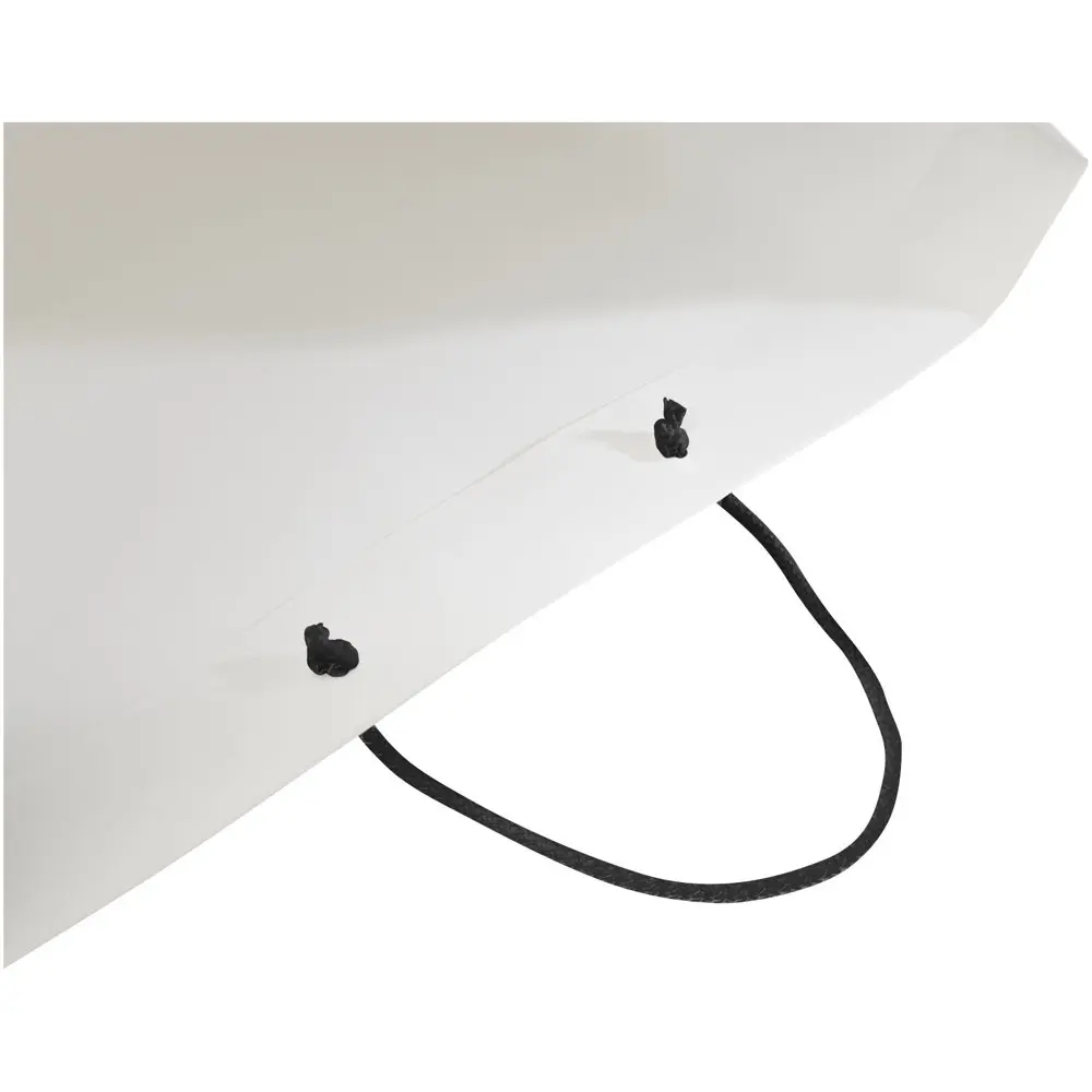 Ce sac en papier integra de 170 g/m² est fabriqué à la main en Europe, avec une taille généreuse de 45 x 35 x 10 cm. Il dispose de poignées torsadées en plastique pour un transport confortable. Le papier laminé offre une finition mate élégante, résistante et adaptée à un usage quotidien.