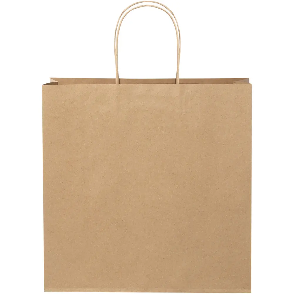Découvrez notre sac en papier Kraft extra large de 120 g/m², aux dimensions pratiques de 31 x 31 x 12 cm, équipé de poignées torsadées résistantes. Ce format spacieux est idéal pour transporter des objets lors d'événements ou comme emballage promotionnel.
