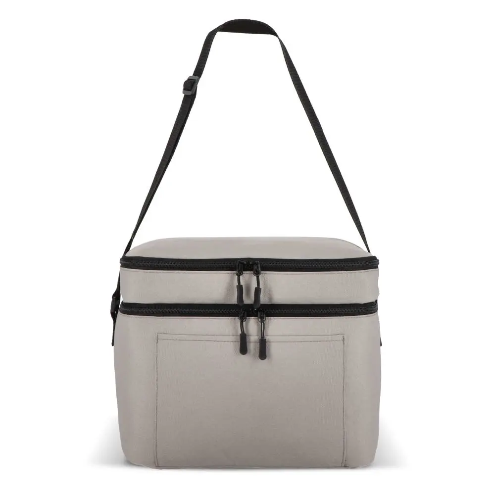 Découvrez notre sac isotherme avec 2 compartiments de 15 litres, fabriqué en PET recyclé 600D pour une approche durable et responsable. Idéal pour les entreprises et organisateurs d'événements, ce sac offre un grand compartiment inférieur et une petite poche supérieure, avec une doublure isolante PEVA qui sépare efficacement les aliments chauds des froids, préservant leur fraîcheur lors de vos déplacements.
