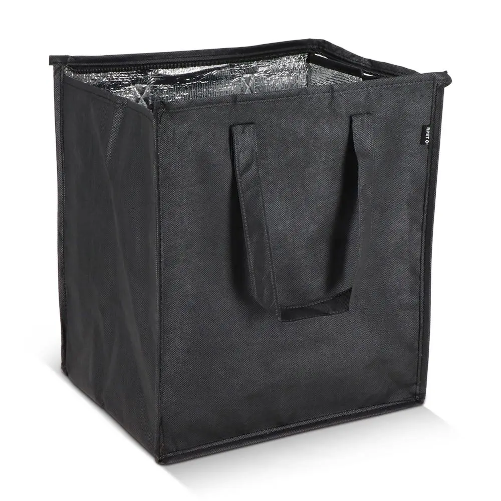 Découvrez notre sac isotherme fabriqué en PET recyclé non tissé de 75 g/m², avec une doublure en aluminium pour une isolation optimale. Conçu pour conserver la fraîcheur ou la chaleur de vos aliments et boissons, ce sac mesure 33 x 25,5 x 37 cm et offre un volume généreux de 25 litres, idéal pour transporter des provisions lors d'événements ou de journées actives.