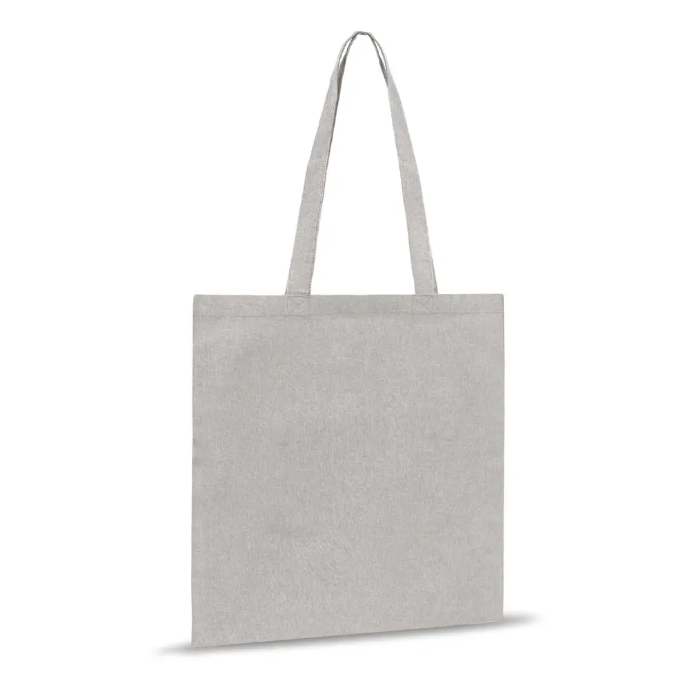 Découvrez ce sac shopping en coton fabriqué à partir de textiles recyclés, une option idéale pour vos campagnes marketing et événements d'entreprise. Avec ses dimensions de 38 x 42 cm, il offre un espace généreux pour transporter des achats ou des goodies promotionnels.