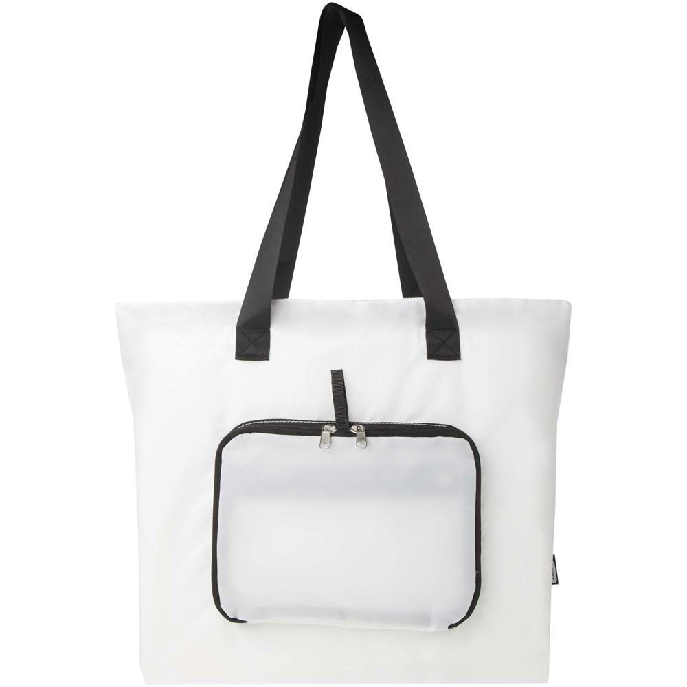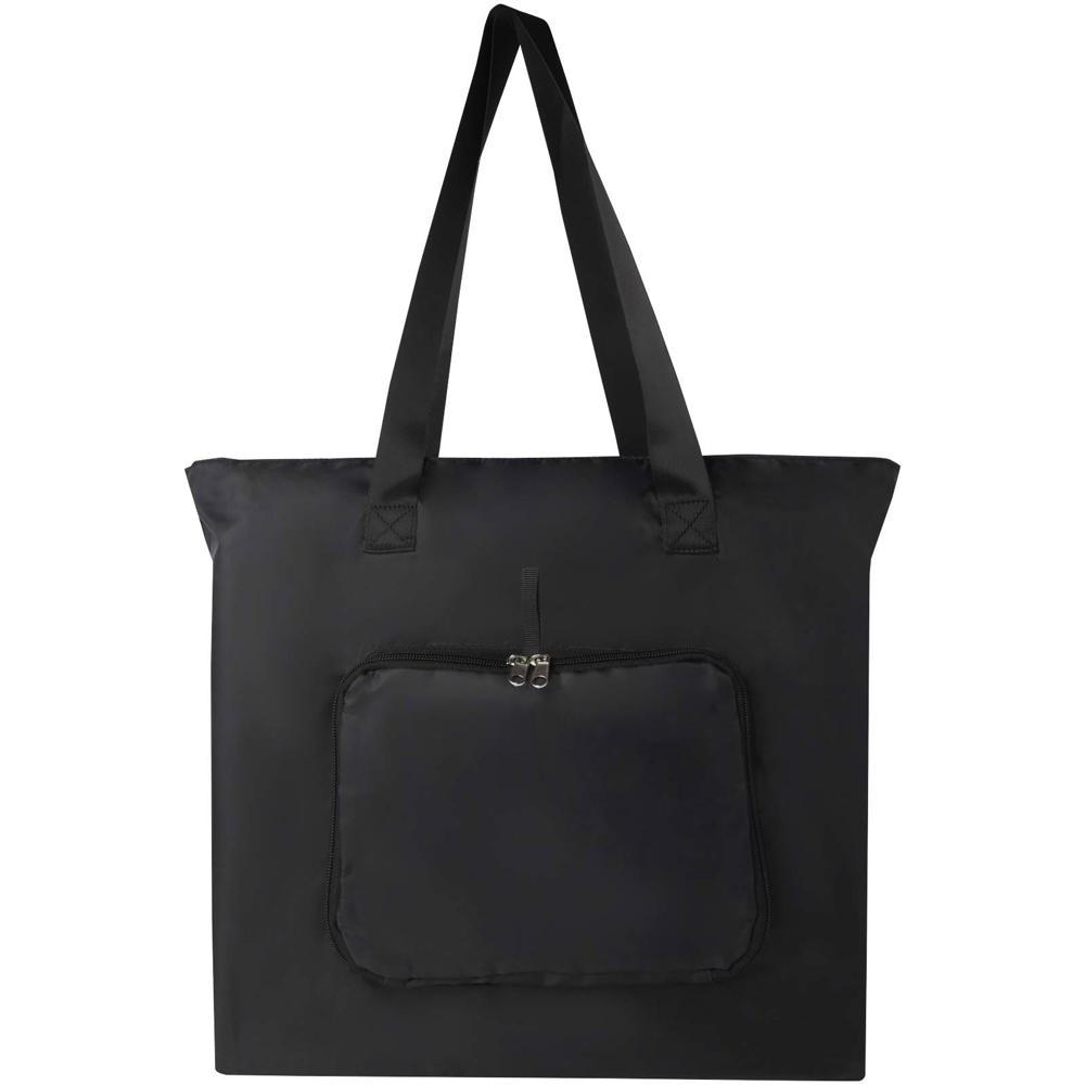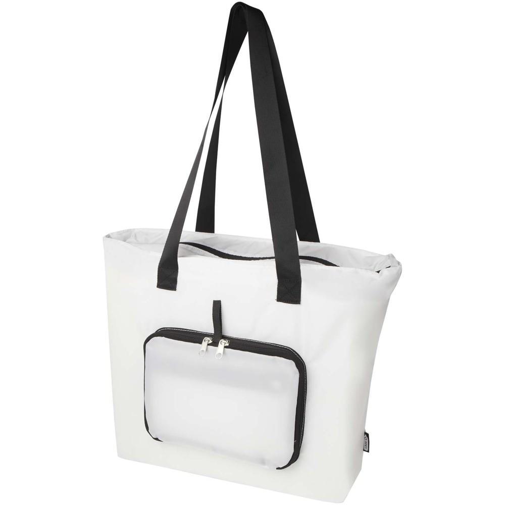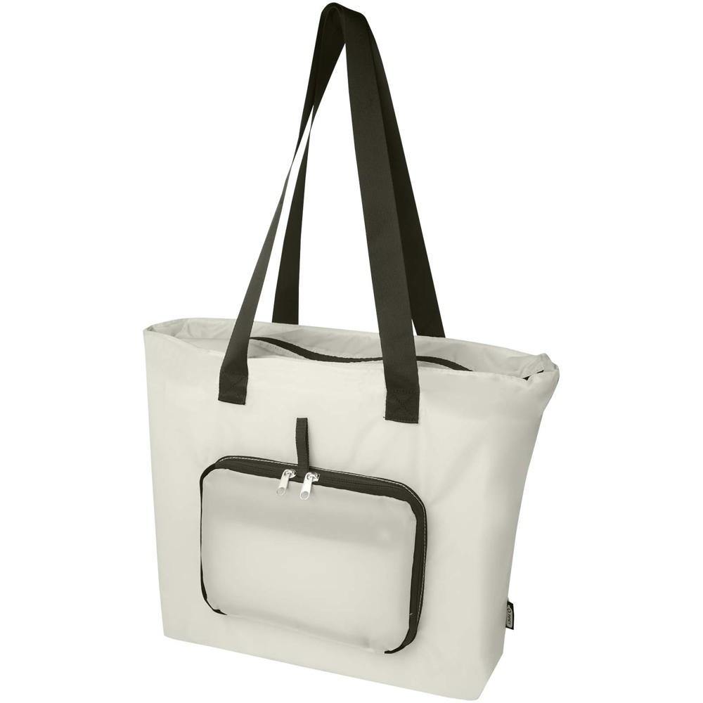 Sac shopping pliable EcoFold de 16 L : conçu pour les professionnels du marketing et organisateurs d'événements, ce sac léger et résistant se plie en une pochette compacte avec boucle sangle pour un transport facile. Idéal comme cadeau promotionnel personnalisable, il offre un compartiment principal spacieux zippé, une poche frontale zippée et deux longues poignées en sangle lisse de qualité supérieure.