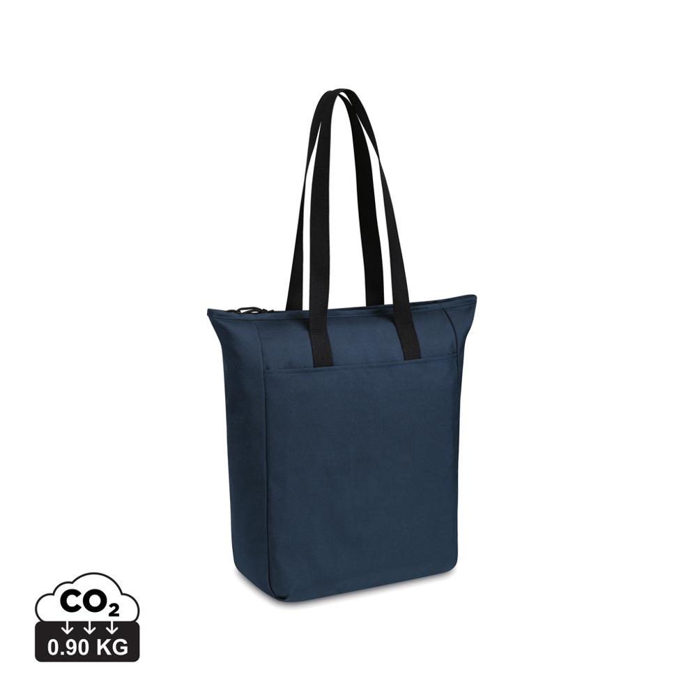 Découvrez notre sac tote Renew avec fermeture à zip, un fourre-tout classique, moderne et durable idéal pour vos campagnes marketing et événements. Fabriqué en tissu recyclé et sangles issues de bouteilles en plastique recyclées, il allie style et engagement écologique, renforçant l'image responsable de votre marque auprès de vos clients.