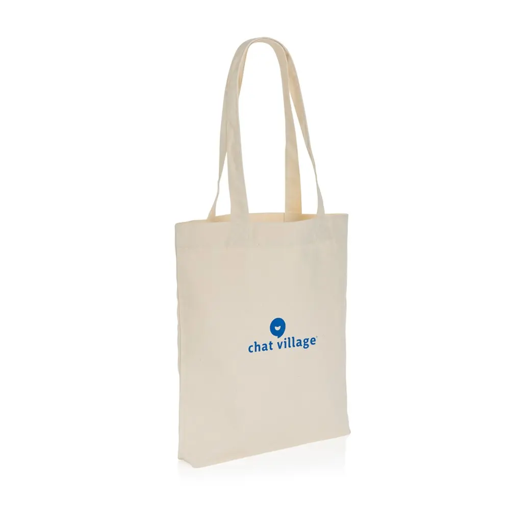 Personnalisez ce sac tote avec votre logo via impression ou broderie pour une visibilité maximale lors de salons, conférences ou distributions internes. Nous vous conseillons d'opter pour des designs simples et colorés qui complètent le look naturel de la toile brute, renforçant ainsi l'aspect authentique et écologique.