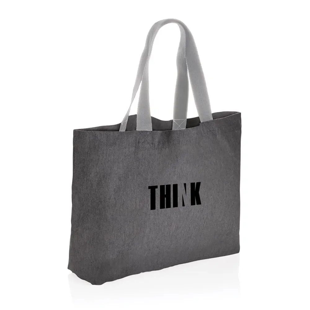 Découvrez ce sac tote XL en toile recyclée, idéal pour les professionnels du marketing et les organisateurs d'événements. Avec une capacité de 31 litres, il offre un espace généreux pour transporter documents, goodies ou échantillons lors de salons et conférences. Personnalisez-le facilement avec votre logo pour renforcer votre image de marque auprès de vos clients.