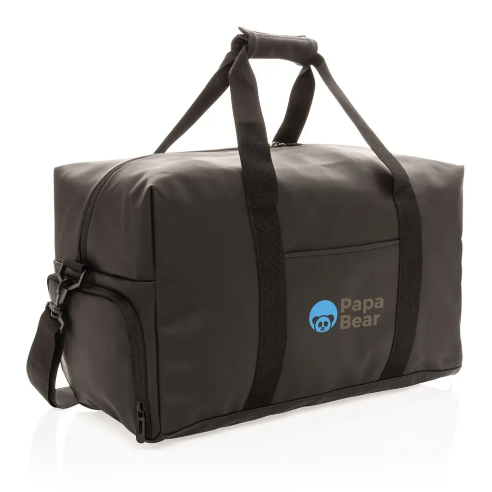 Découvrez notre sac week-end en PU doux, idéal pour les déplacements courts ou les activités sportives. Son design minimaliste et fonctionnel en fait un cadeau promotionnel parfait pour vos événements d'entreprise ou campagnes marketing. Personnalisez-le avec votre logo pour une visibilité optimale auprès de vos clients.
