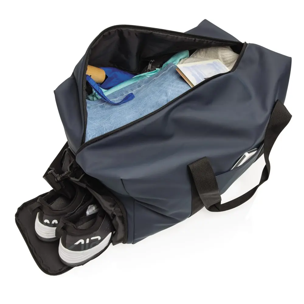 Découvrez notre sac week-end en PU, parfait pour les voyages d'affaires brefs ou les séances de sport. Son design minimaliste et élégant s'adapte à tous les contextes professionnels, en faisant un choix idéal pour vos événements ou campagnes marketing.