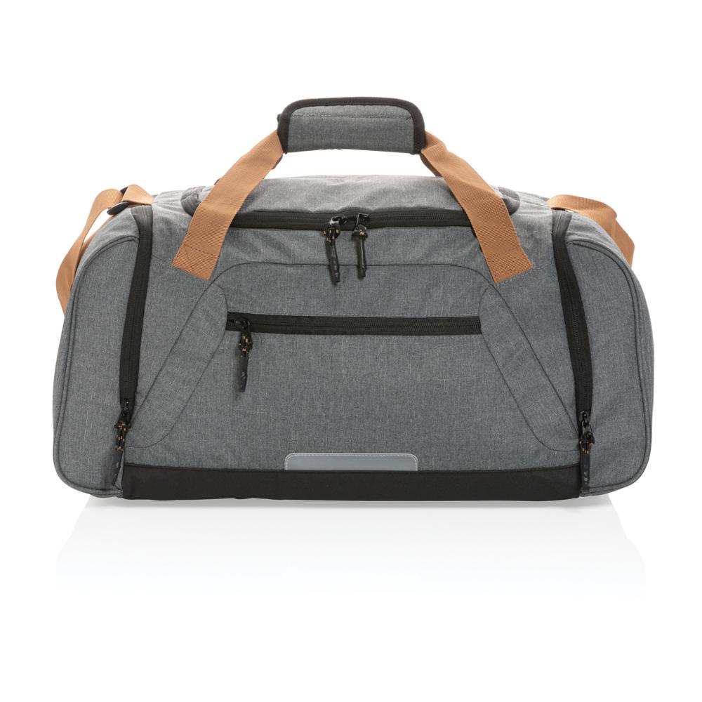Découvrez le Sac week-end Urban Outdoor, l'accessoire idéal pour vos campagnes marketing et événements d'entreprise. Fabriqué à 50% en polyester recyclé avec une doublure 100% polyester recyclé, il intègre le traceur AWARE™ certifiant l'utilisation réelle de matériaux recyclés. Chaque sac réutilise l'équivalent de 24,05 bouteilles PET de 0,5L et est entièrement sans PVC.