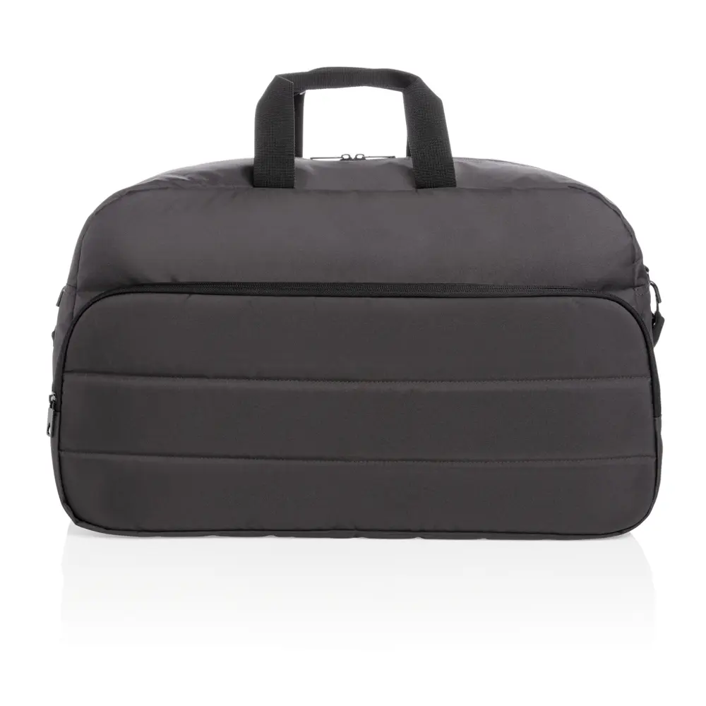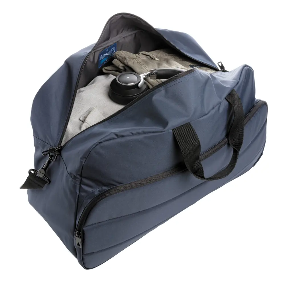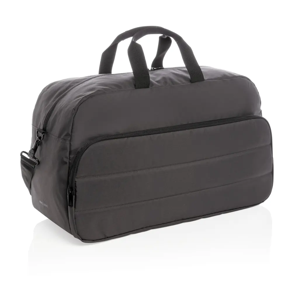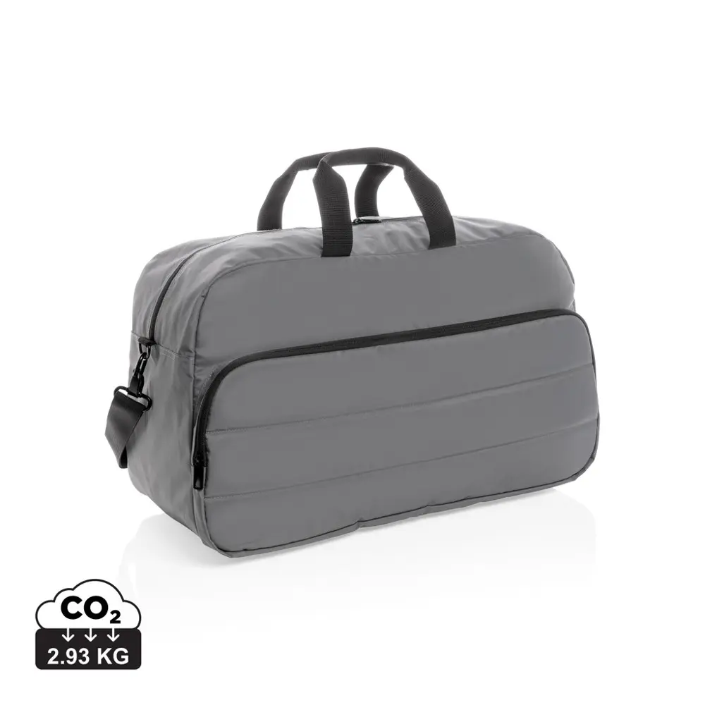 Découvrez le sac weekend Impact, un compagnon idéal pour vos événements et campagnes marketing. Fabriqué en rPET AWARE™ à partir de 45 bouteilles en plastique recyclées, il intègre le traceur AWARE™ pour une traçabilité authentique de sa durabilité. Chaque achat permet d'économiser 27 litres d'eau et reverse 2 % des recettes à Water.org, renforçant l'engagement écologique de votre marque.