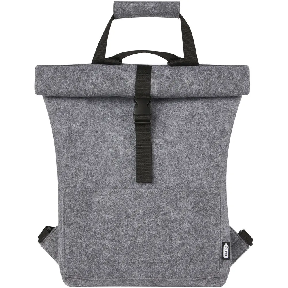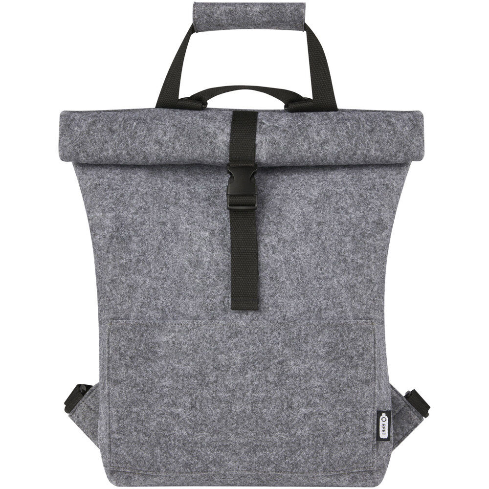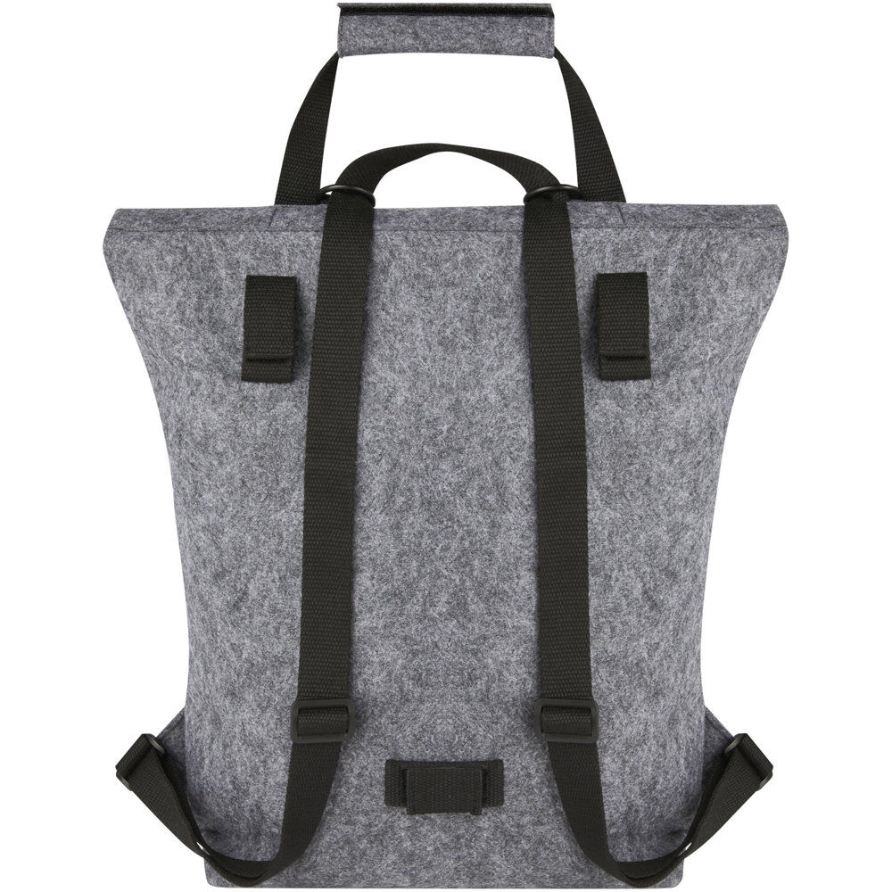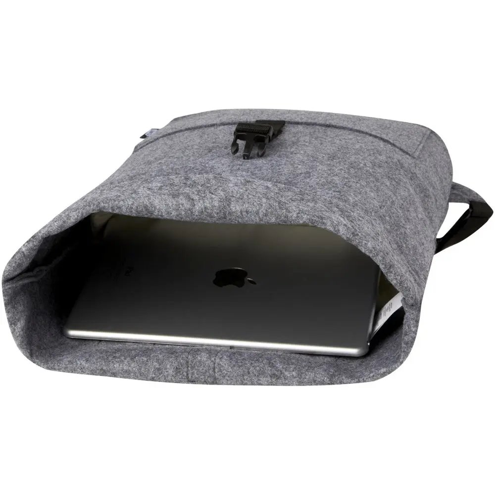 Découvrez notre sacoche de vélo Felta de 13 L, un hybride innovant combinant sac à dos et fietstas grâce à son dessus enroulable. Fabriquée en feutre recyclé certifié GRS à partir de polyester recyclé, elle allie douceur, durabilité et qualité supérieure, idéal pour une image éco-responsable de votre marque.