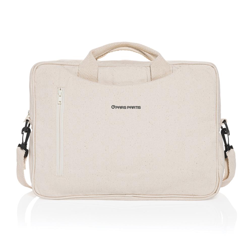 Découvrez la sacoche ordinateur portable Laluka en coton recyclé AWARE™, idéale pour les laptops jusqu'à 15,4 pouces. Conçue en sergé de coton recyclé avec un poids de tissu de 340 g/m², elle offre une protection optimale grâce à sa pochette rembourrée à fermeture velcro et ses poches frontales pratiques pour une organisation simplifiée.