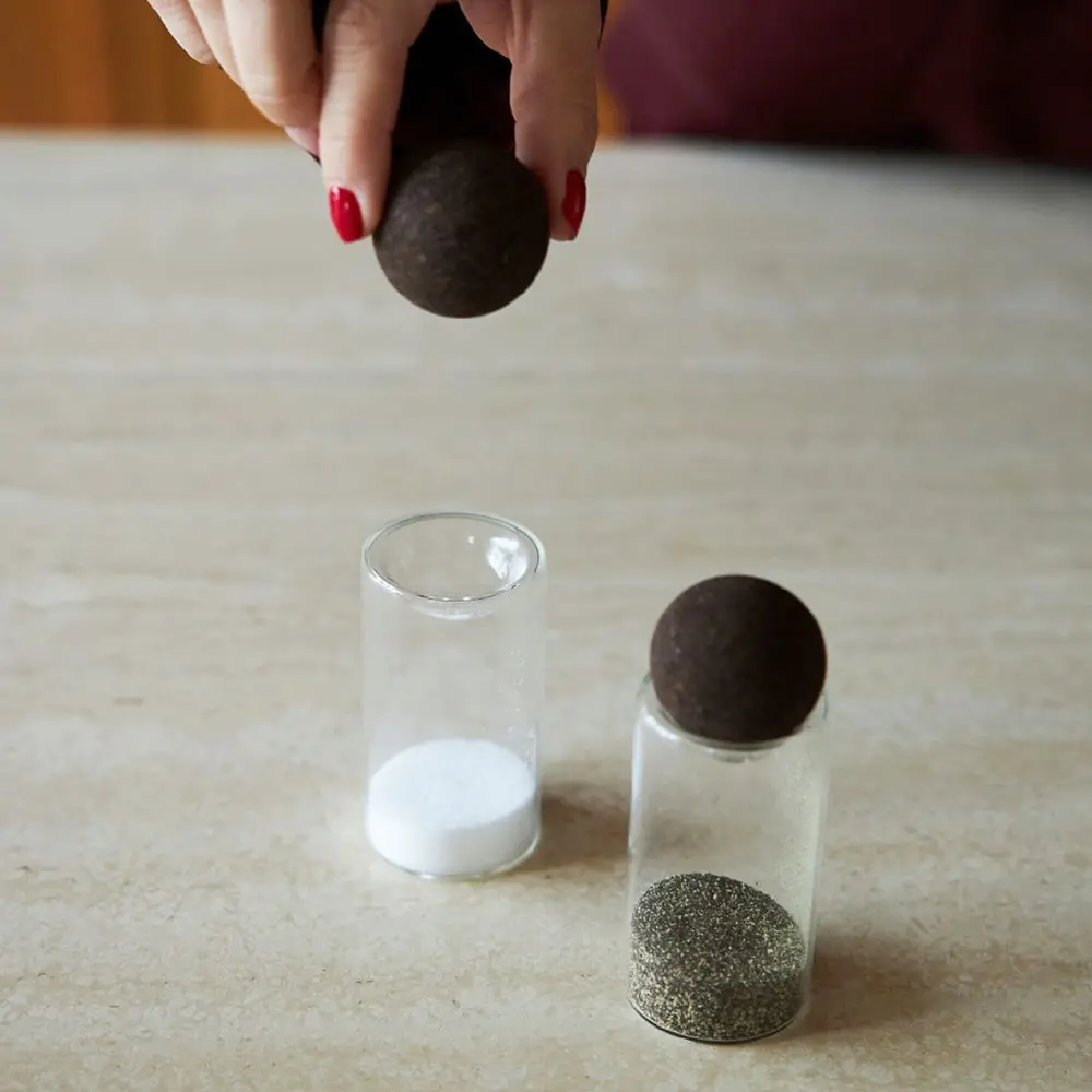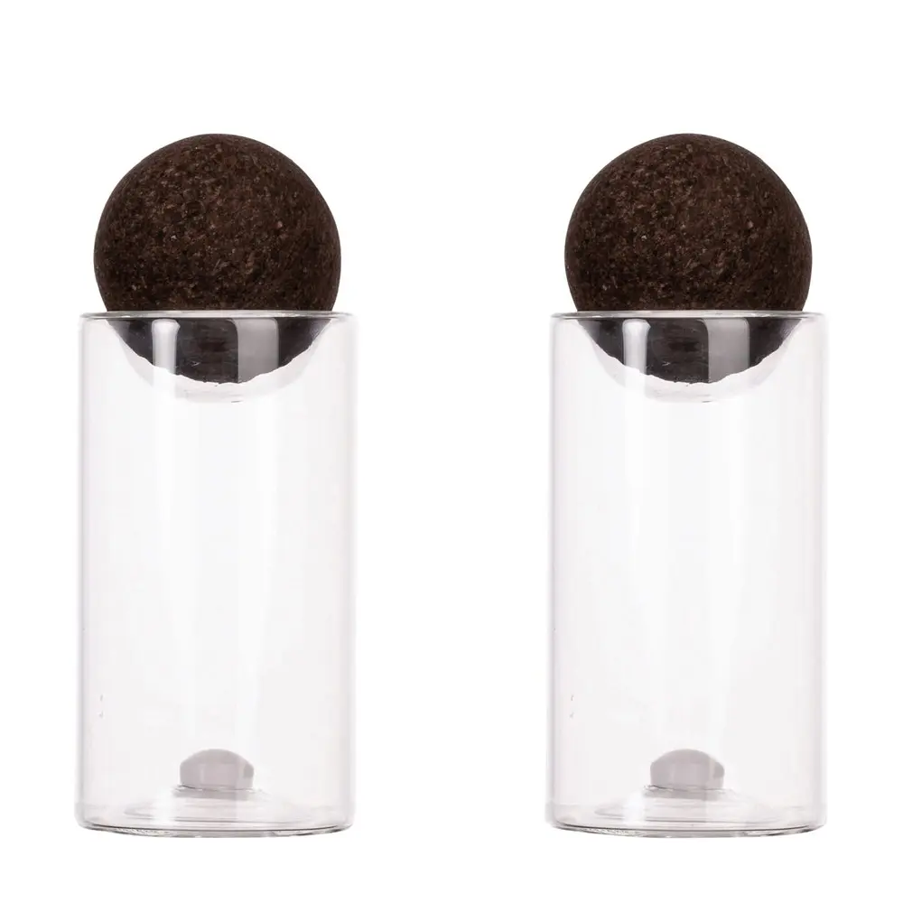 Découvrez ces adorables pots en verre pour sel et poivre, équipés de bouchons en liège naturel formant une boule pratique. Ce duo intemporel allie élégance classique et fonctionnalité quotidienne, parfait pour une table raffinée.