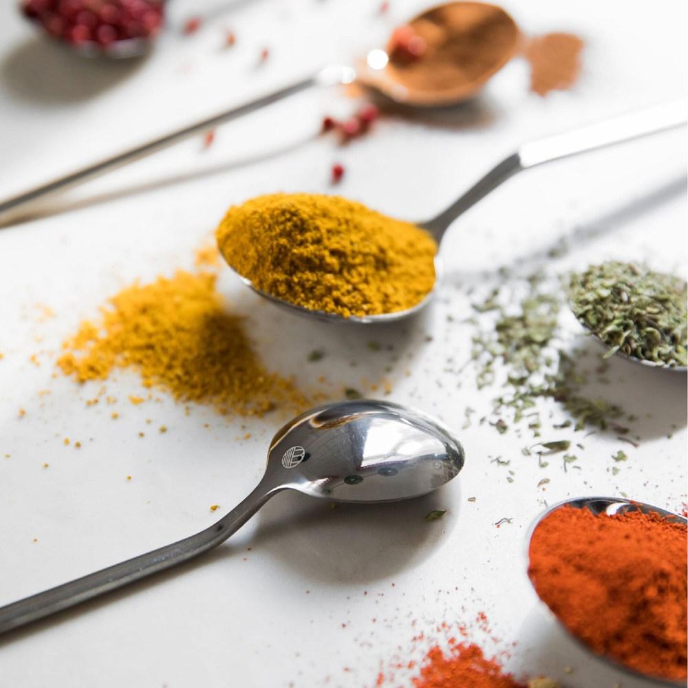 Dimensions : fourchette 21 x 3 cm / couteau 22 x 2 cm / cuillère 20,5 x 5 cm / petite cuillère 13,5 x 3,5 cm.