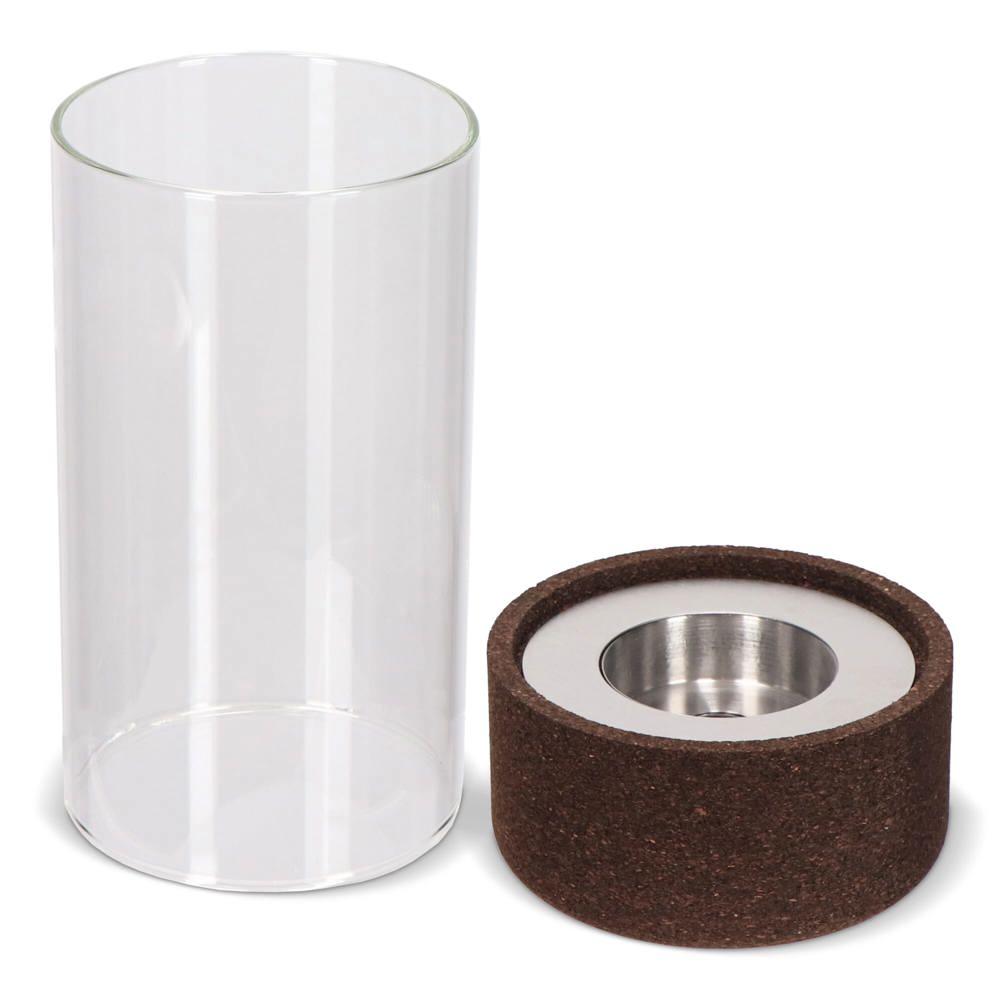Composée de liège et de verre, cette lanterne mesure 120 mm de diamètre et s'utilise parfaitement en extérieur. La partie en liège est entièrement biodégradable et recyclable, répondant aux exigences environnementales de vos actions responsables.