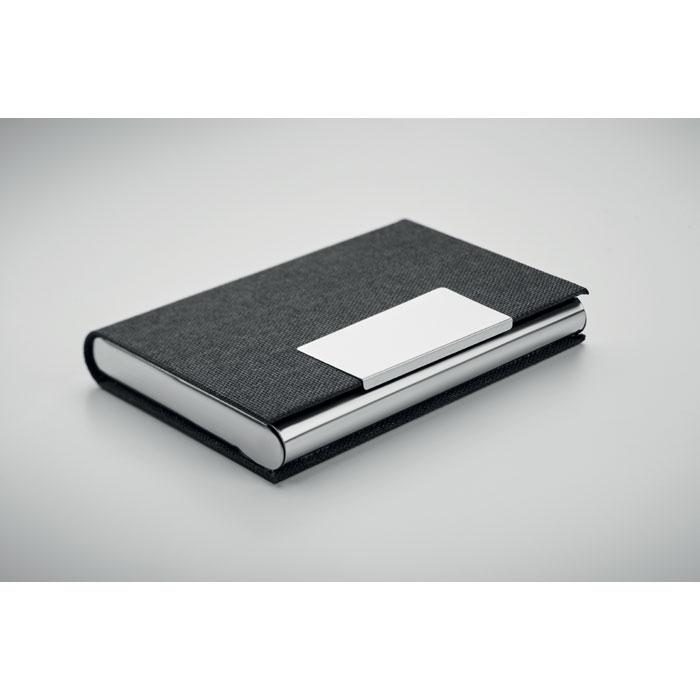 Découvrez ce coffret cadeau promotionnel élégant, composé de trois articles pratiques en polyester RPET recyclé : un stylo bille twist en métal, un porte-clés et un porte-cartes avec plaque métallique.