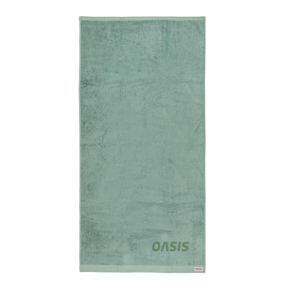 Offrez à vos clients un cadeau d'entreprise premium et personnalisable avec votre logo. Cette serviette de bain 70x140 cm, pesant 500 g, est idéale pour les événements, salons ou campagnes marketing. Fabriquée à 30 % en coton recyclé avec traceur AWARE™ garantissant sa traçabilité, elle renforce l'image éco-responsable de votre marque.