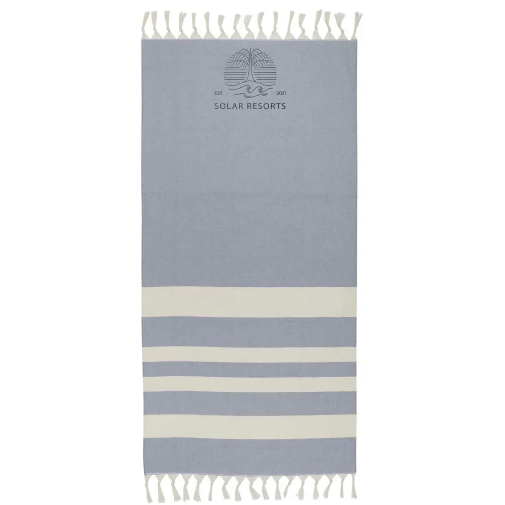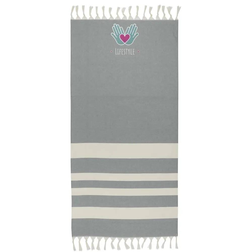 Découvrez une serviette de hammam idéale pour personnaliser avec votre logo et offrir à vos clients lors d'événements ou comme cadeau promotionnel. Avec ses dimensions généreuses de 147 x 75,5 cm, elle assure une couverture optimale pour un confort maximal au bord de la piscine ou à la plage.