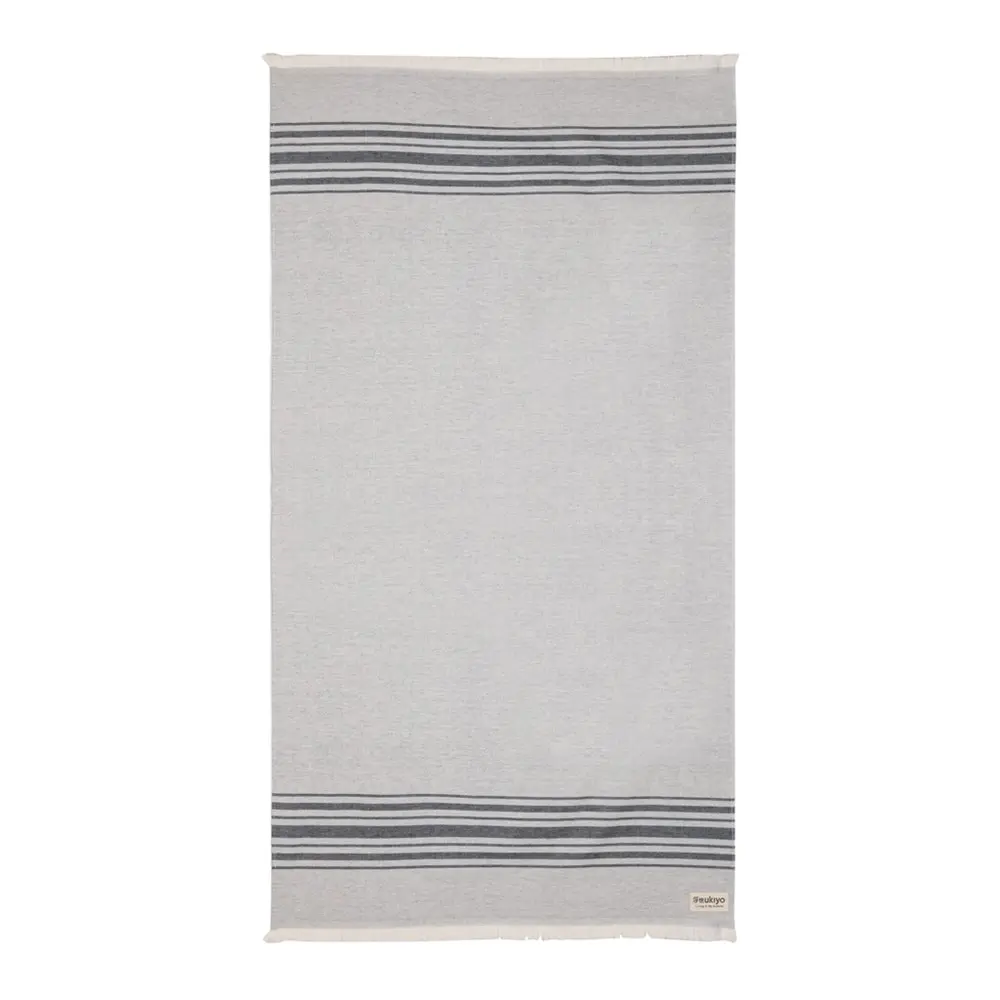 Découvrez la serviette de hammam Ukiyo Yumiko, un cadeau promotionnel idéal pour vos événements et campagnes marketing. Fabriquée en Europe avec 12 % de coton recyclé, elle offre une douceur exceptionnelle, une absorption optimale et un séchage rapide, tout en résistant au sable. Multifonctionnelle, elle sert de couverture pour pique-nique, tapis de yoga, serviette de plage ou pour bébé, parfait pour diversifier vos actions relationnelles.