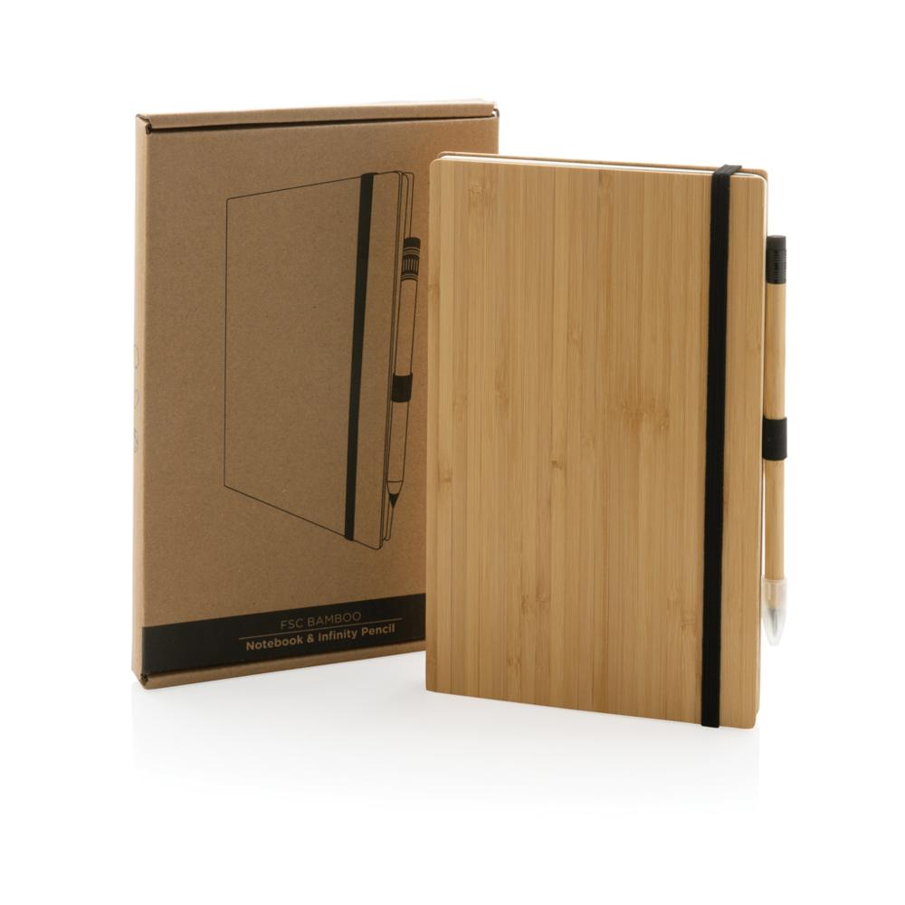 Carnet de notes en bambou avec crayon infini