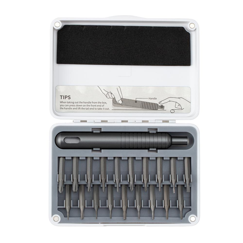Ce kit est conçu pour les tâches délicates sur ordinateurs portables, ordinateurs, lunettes et plus. Le tournevis mat avec porte-embout et les 19 embouts magnétiques en acier inoxydable S2 ultra-dur assurent une précision maximale et une adaptabilité optimale :