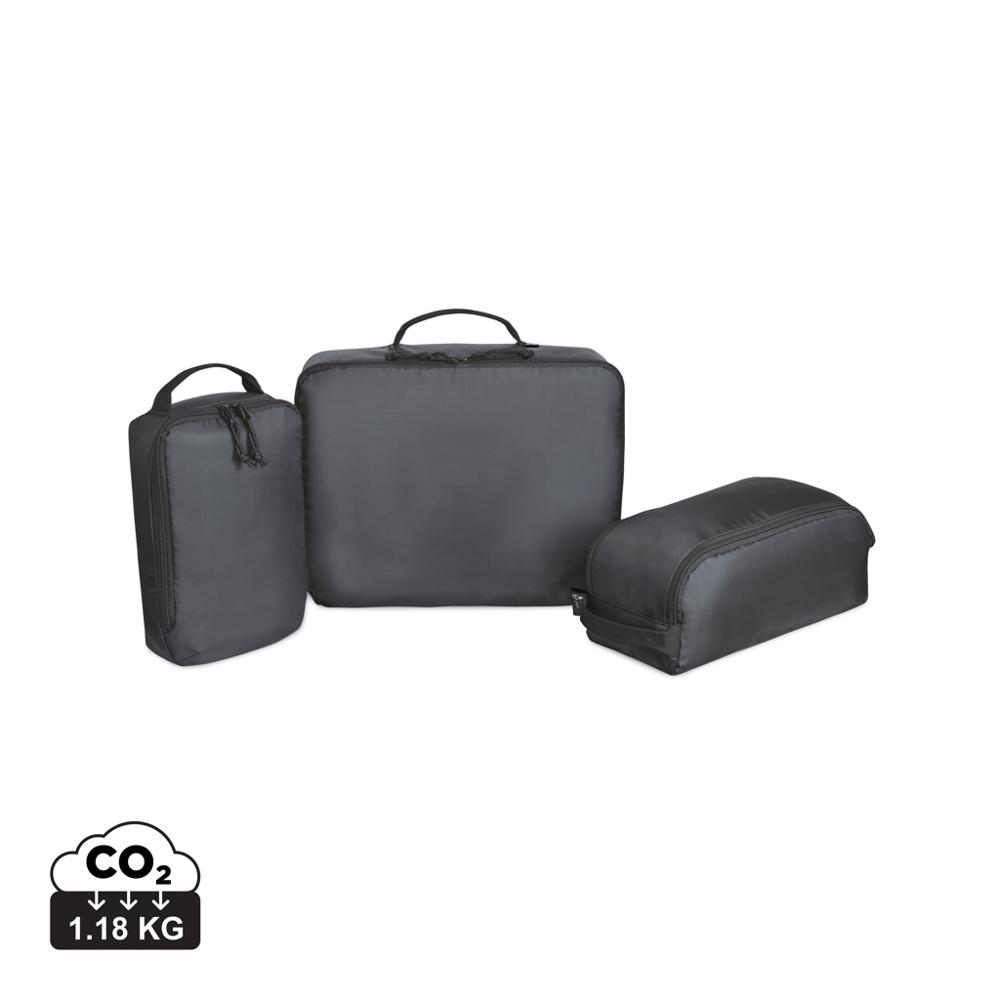 Set de 3 cubes de compression Renew : un ensemble innovant de cubes de rangement en tissu recyclé et sangles issues de bouteilles en plastique, idéal pour organiser vos déplacements professionnels ou événements.