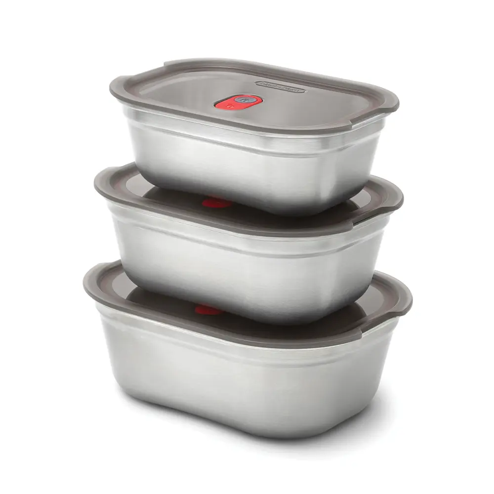 Découvrez notre set de trois boîtes de repas en acier inoxydable, disponibles en tailles petite, moyenne et grande, idéales pour des cadeaux promotionnels personnalisables. Ces contenants légers et durables conservent les aliments frais grâce à leur couvercle hermétique scellé sous vide, parfait pour les déjeuners nomades ou le stockage quotidien. Profitez de leur compatibilité micro-ondes sans retirer le couvercle, évitant les éclaboussures et optimisant le temps de chauffe. Le semi-transparent permet une vue rapide du contenu, tandis que la base en acier inoxydable supporte lave-vaisselle, congélateur et four (couvercle exclu). Sans BPA et conformes aux normes alimentaires UE, elles s'emboîtent pour un rangement compact. Parfaites pour les événements d'entreprise, ces boîtes renforcent votre marque en offrant praticité et qualité à vos clients.