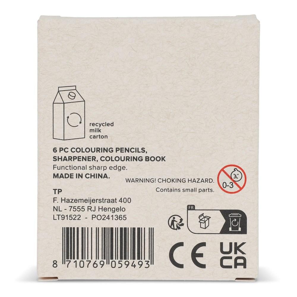 Découvrez cet ensemble complet pour stimuler la créativité : 6 crayons de couleur, un taille-crayon pratique et un livret de coloriage amusant, le tout présenté dans une boîte en brique de lait recyclée. Compact et idéal pour les voyages ou les événements, ce kit offre des heures de divertissement tout en étant respectueux de l'environnement grâce à son impression numérique écologique.