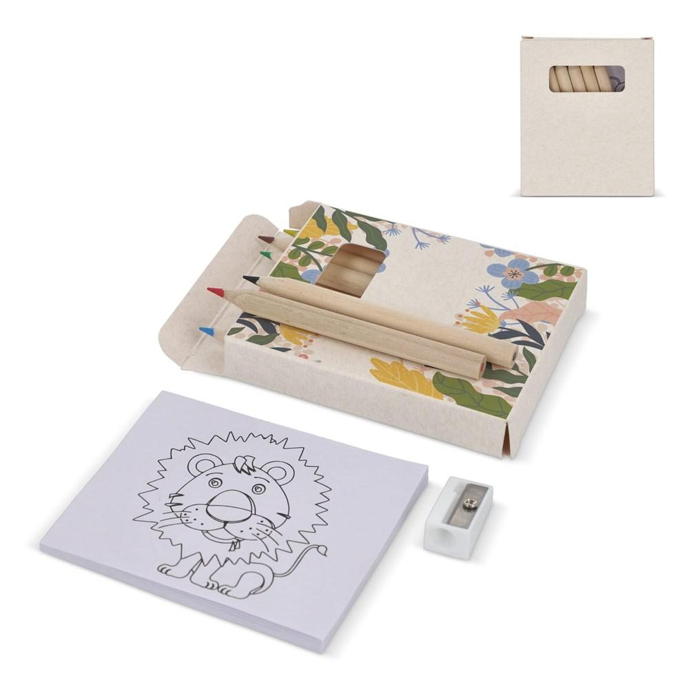 Set de couleurs avec 6 crayons, taille-crayon et livret